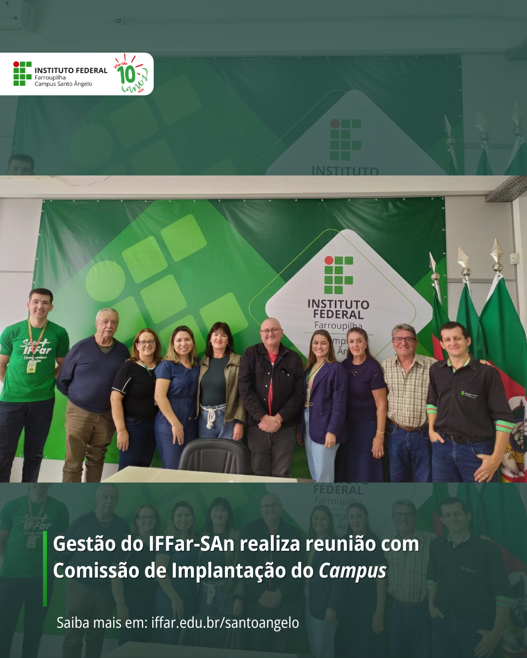 Na manhã do dia 04 de abril, a nova equipe diretiva do Instituto Federal Farroupilha – Campus Santo Ângelo (IFFar-SAn) realizou com membros da Comissão de Implantação do Campus. O encontro teve como objetivo a apresentação de temas estratégicos relacionados ao desenvolvimento institucional.