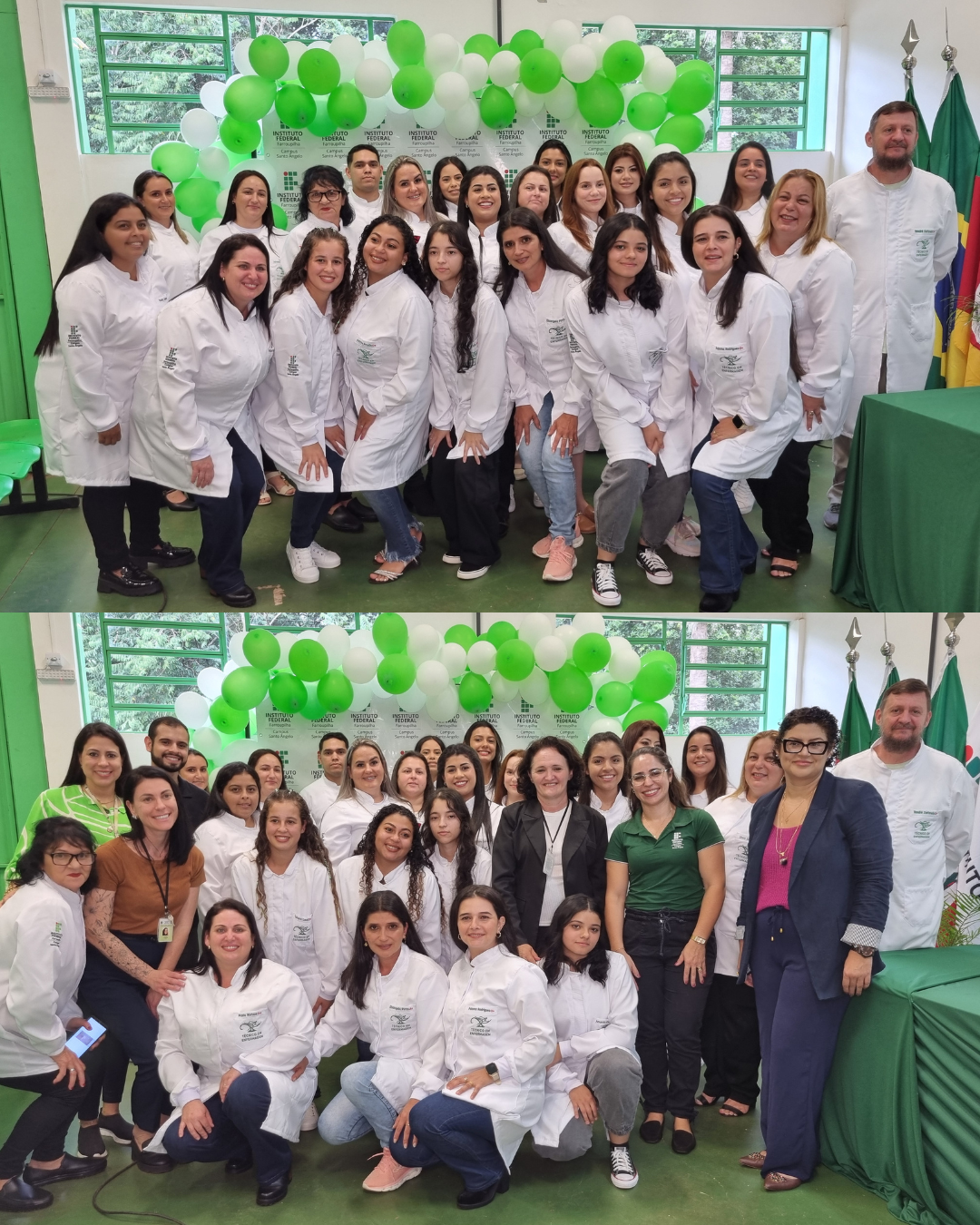 Para encerrar o evento, celebramos junto com os discentes e seus familiares a "Cerimônia de Entrega de Jalecos", um momento emocionante e de simbolismo único, que denota aos estudantes a importância e a responsabilidade de receber o jaleco durante a formação em Enfermagem.