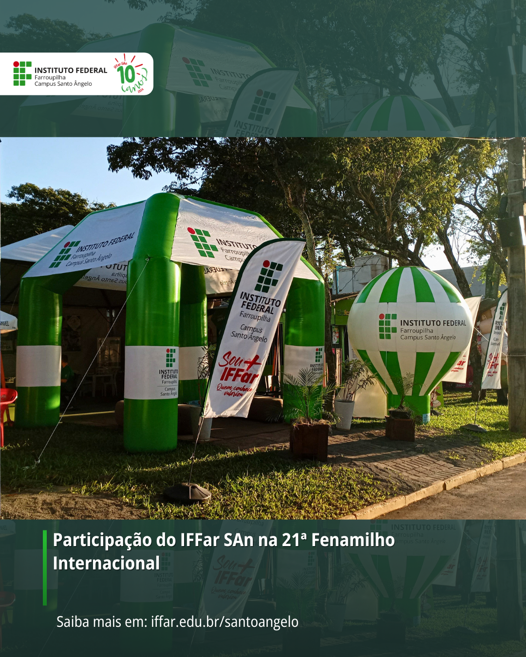 Entre os dias 19 e 27 de abril de 2025, o Instituto Federal Farroupilha – Campus Santo Ângelo (IFFar-SAn) esteve presente na 21ª Fenamilho Internacional, realizada no Parque de Exposições Siegfried Ritter. A participação institucional se deu em dois espaços estratégicos: a Casa IFFar-SAn e o Campo Tech, com atividades voltadas à divulgação científica, extensão, interação comunitária e visibilidade institucional.