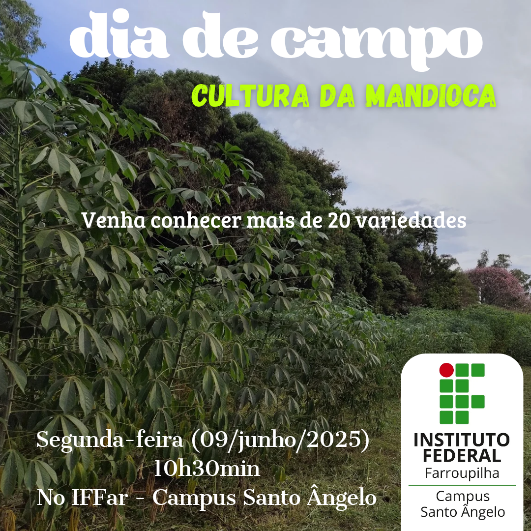 Na próxima segunda-feira (10/06), às 10h30, o IFFar – Campus Santo Ângelo promove um Dia de Campo sobre variedades de mandioca!
