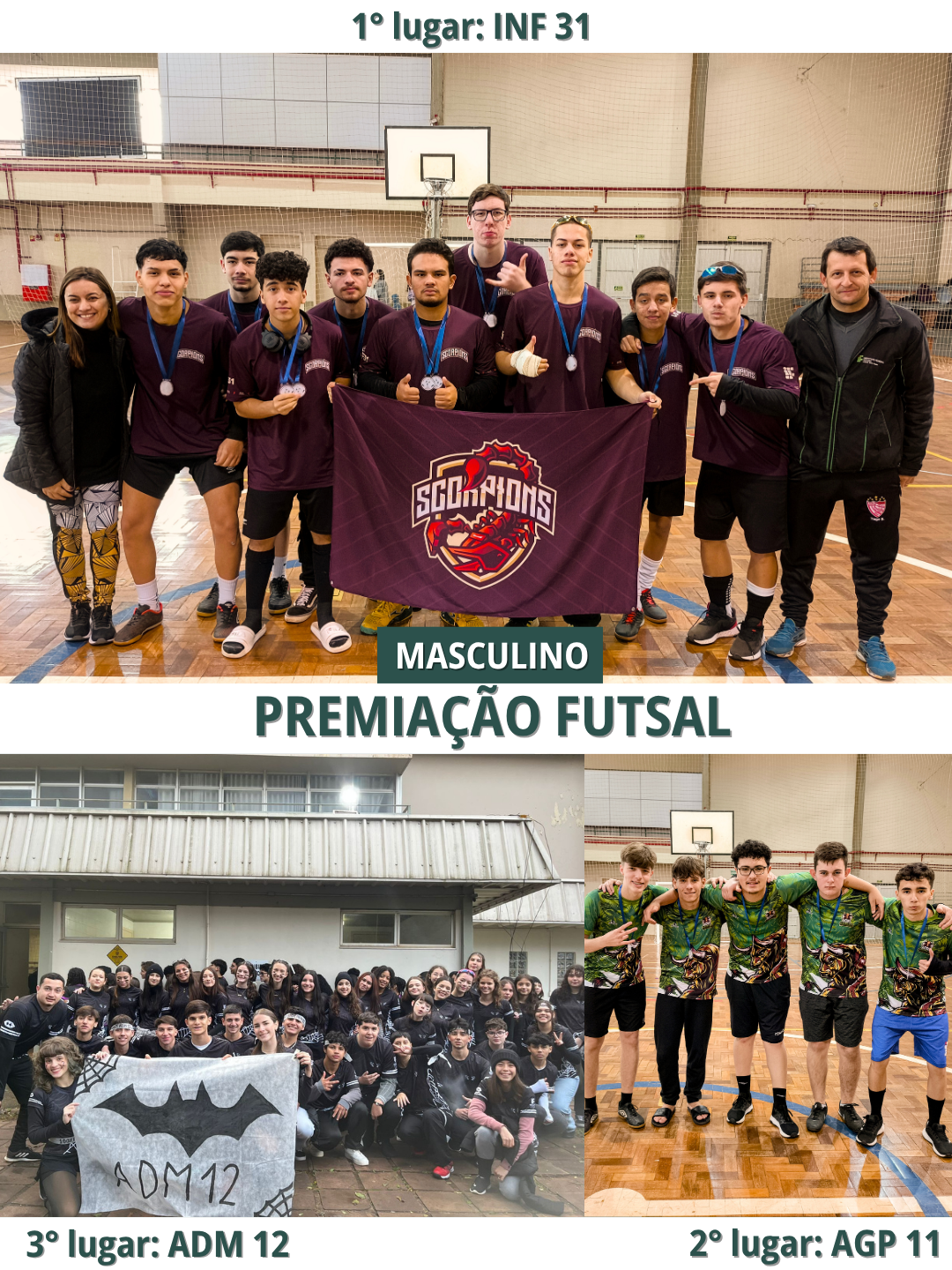 Masculino: 1º lugar – INF 31 | 2º lugar – AGP 11 | 3º lugar – ADM 12