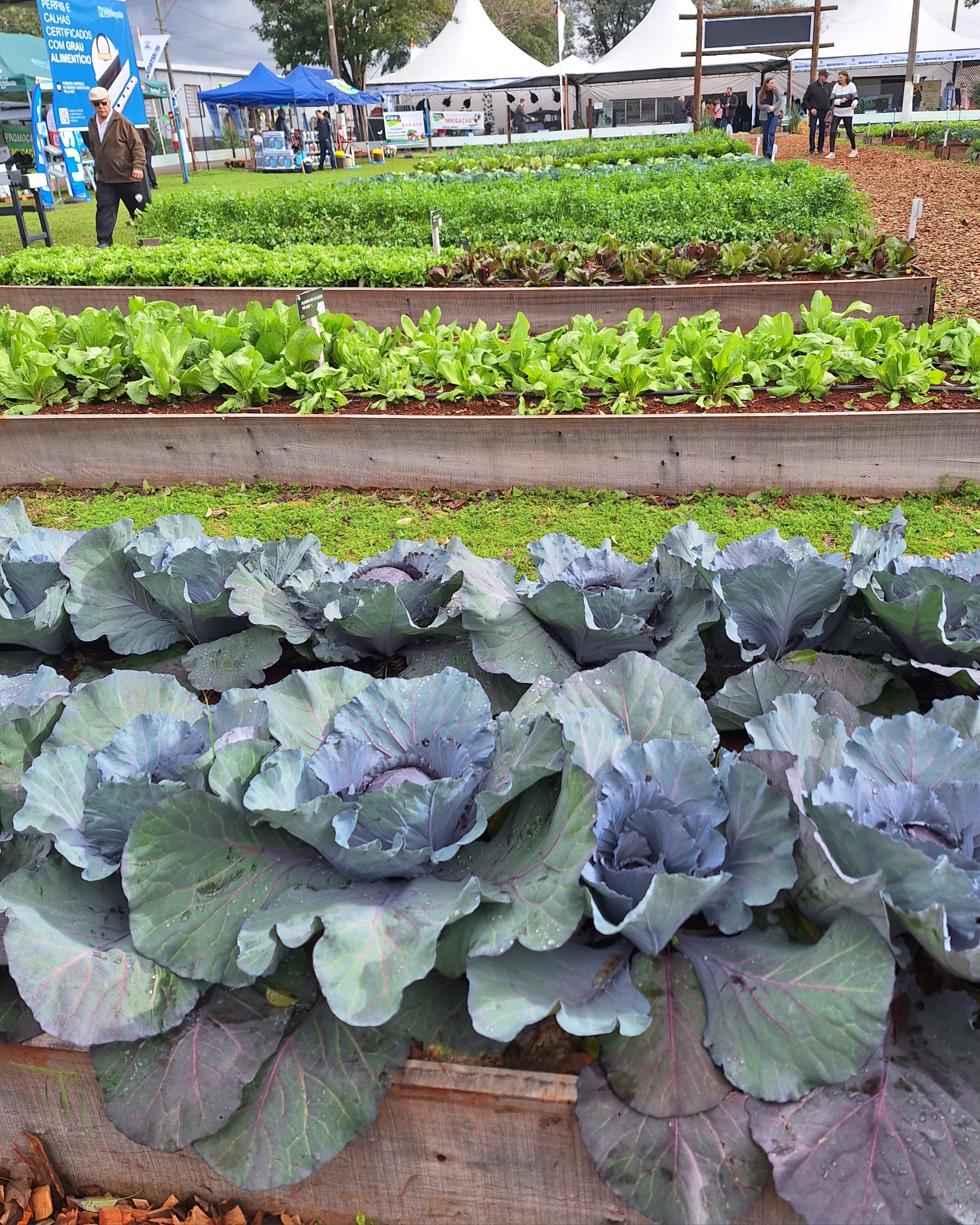 "Foi colocado um espaço com plantas de cobertura, cobertura morta de solo com lona e com palhada, diferentes sistemas de controle de plantas espontâneas, bem como outro espaço também demonstrando o sistema de plantio direto de hortaliça e demonstração de diferentes utilizações de compostos e vermecompostos, representando diferentes insumos biológicos e orgânicos no sistema de produção das olerícolas".