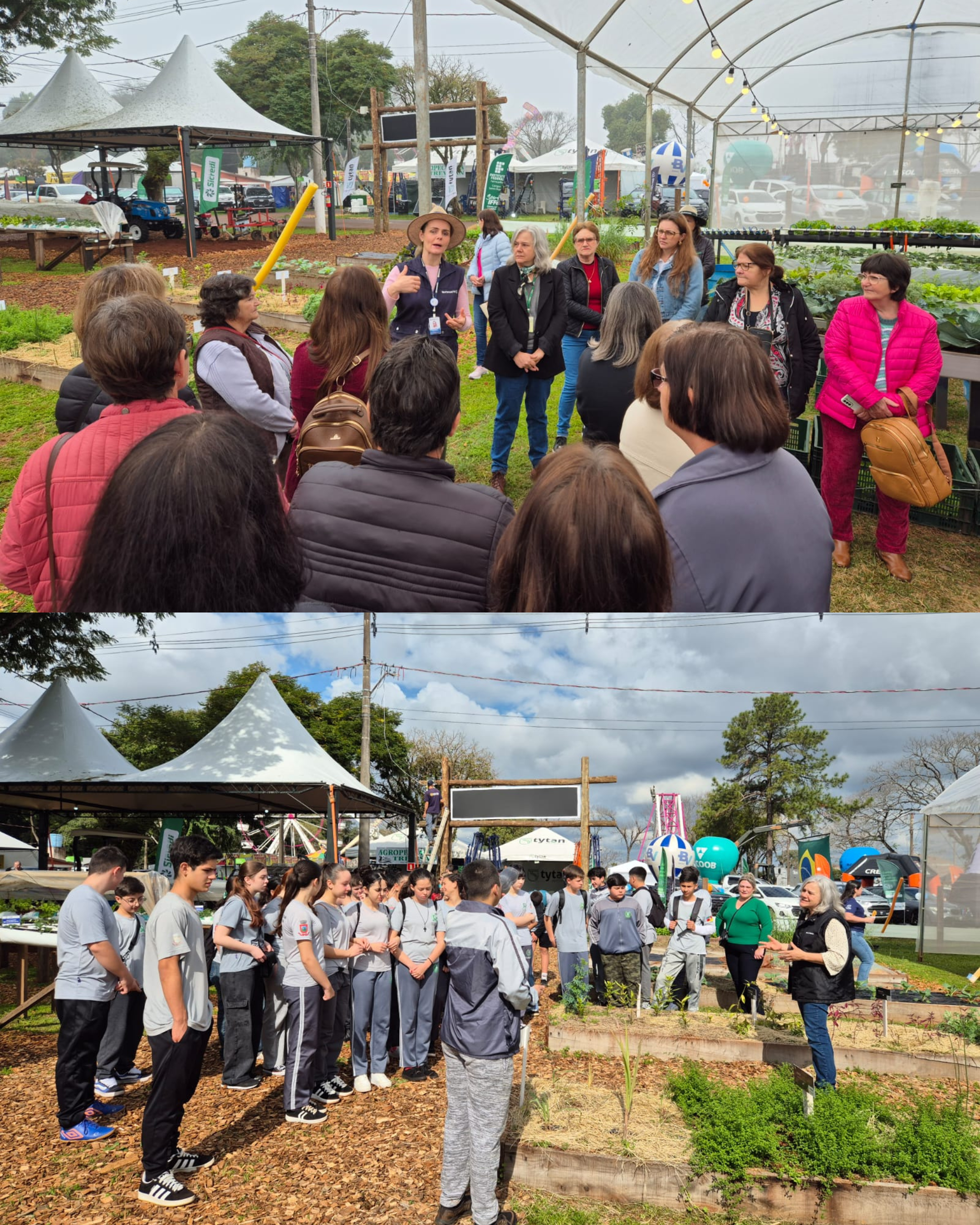 Um dos destaques da programação foi o Hortishow, espaço voltado à demonstração de tecnologias e inovações para a horticultura. A professora Dra. Elaine Vione, do IFFar – Campus Santo Ângelo, explicou que o local integra o Hortigranjeiros e tem como objetivo apresentar práticas e soluções para o setor: