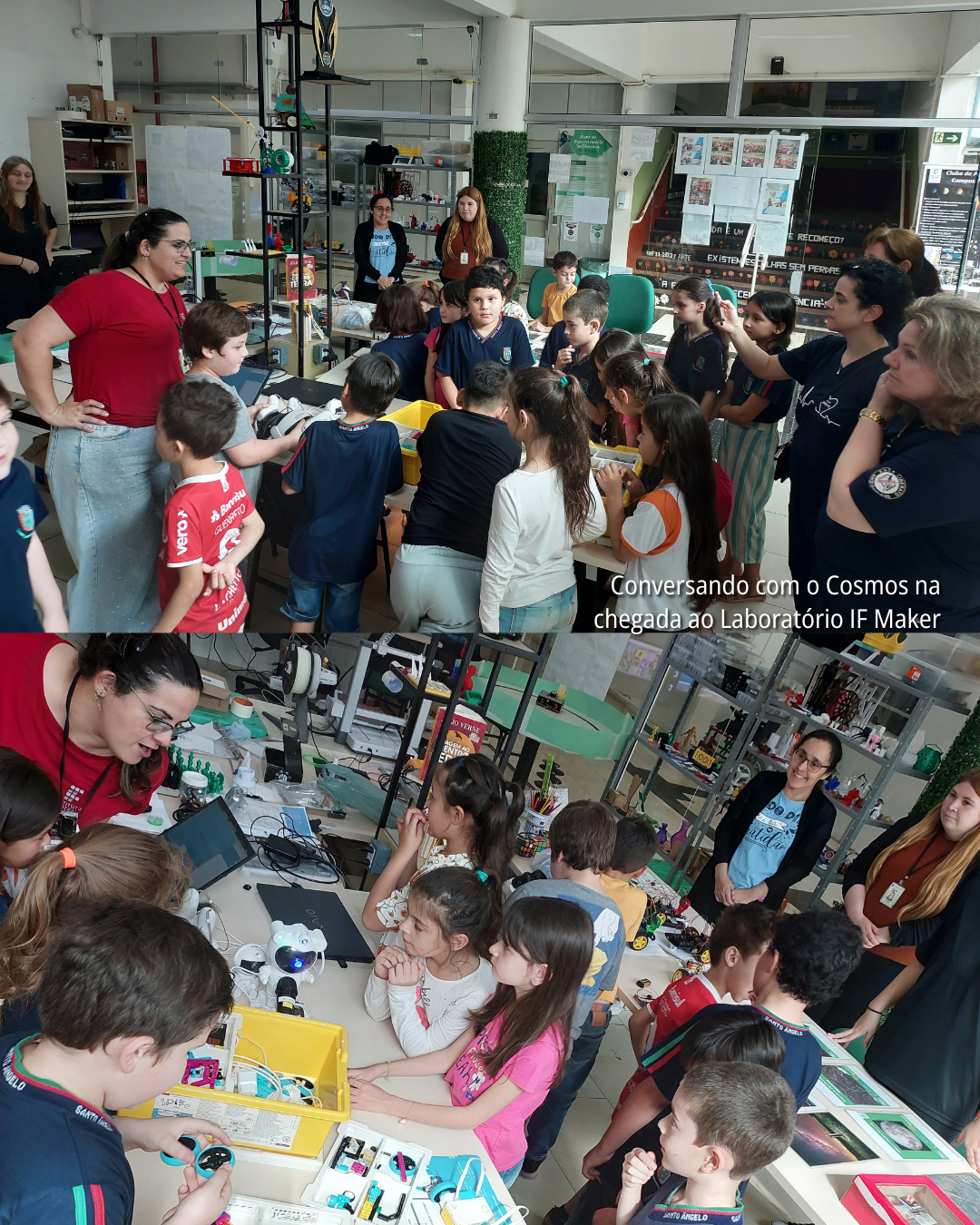 Durante as atividades, as crianças exploraram equipamentos e materiais de exposição, como Kits de Robótica, Impressão 3D, Jogos, registros de observações da Lua e de meteoros. Interagiram com o assistente-astronauta-robô Cosmos e observaram no microscópio uma fatia colorida de meteorito.