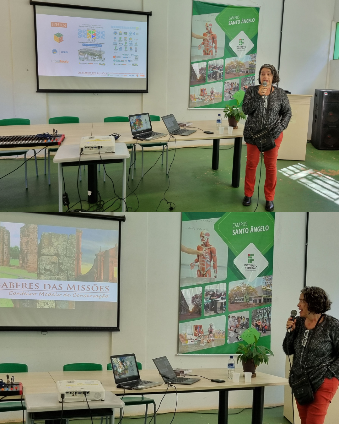 A formação ocorreu no dia 10 de setembro de 2025, no auditório do campus, com a palestra “Patrimônio das Missões: entre as políticas de preservação do passado e os desafios do presente”, proferida pelos palestrantes: