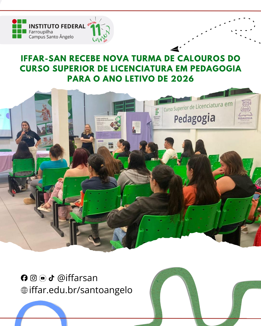 https://iffarroupilhaead.edu.br/noticias-san/item/45227-instituto-federal-farroupilha-campus-santo-%C3%A2ngelo-recebe-nova-turma-de-calouros-do-curso-superior-de-licenciatura-em-pedagogia-para-o-ano-letivo-de-2026#sigProIdcd43d5b20e