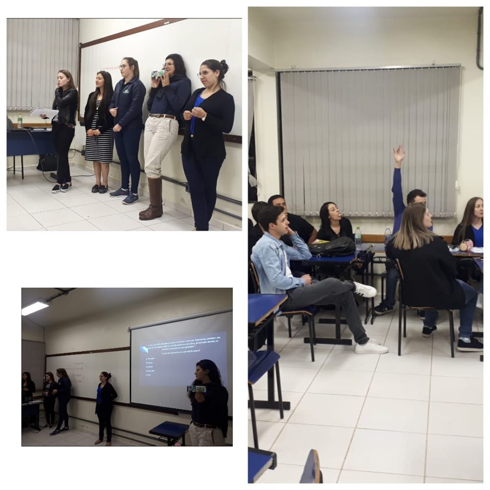 A turma foi dividida em seis grupos, sendo que todos tinham os mesmos conceitos, mas deveriam buscar alternativas diferentes para compreendê-los e explica-los para os colegas e o professor. Como é um trabalho da disciplina e foi uma forma mais dinâmica de relacionar o conteúdo discutido com a teoria, neste momento somente três dos trabalhos podem ser disponibilizados, os demais seguiram formato de dinâmica, como o jogo do bingo, com questões ligadas aos conceitos, palavras chaves e passa ou repassa, com questões para os grupos responderem.