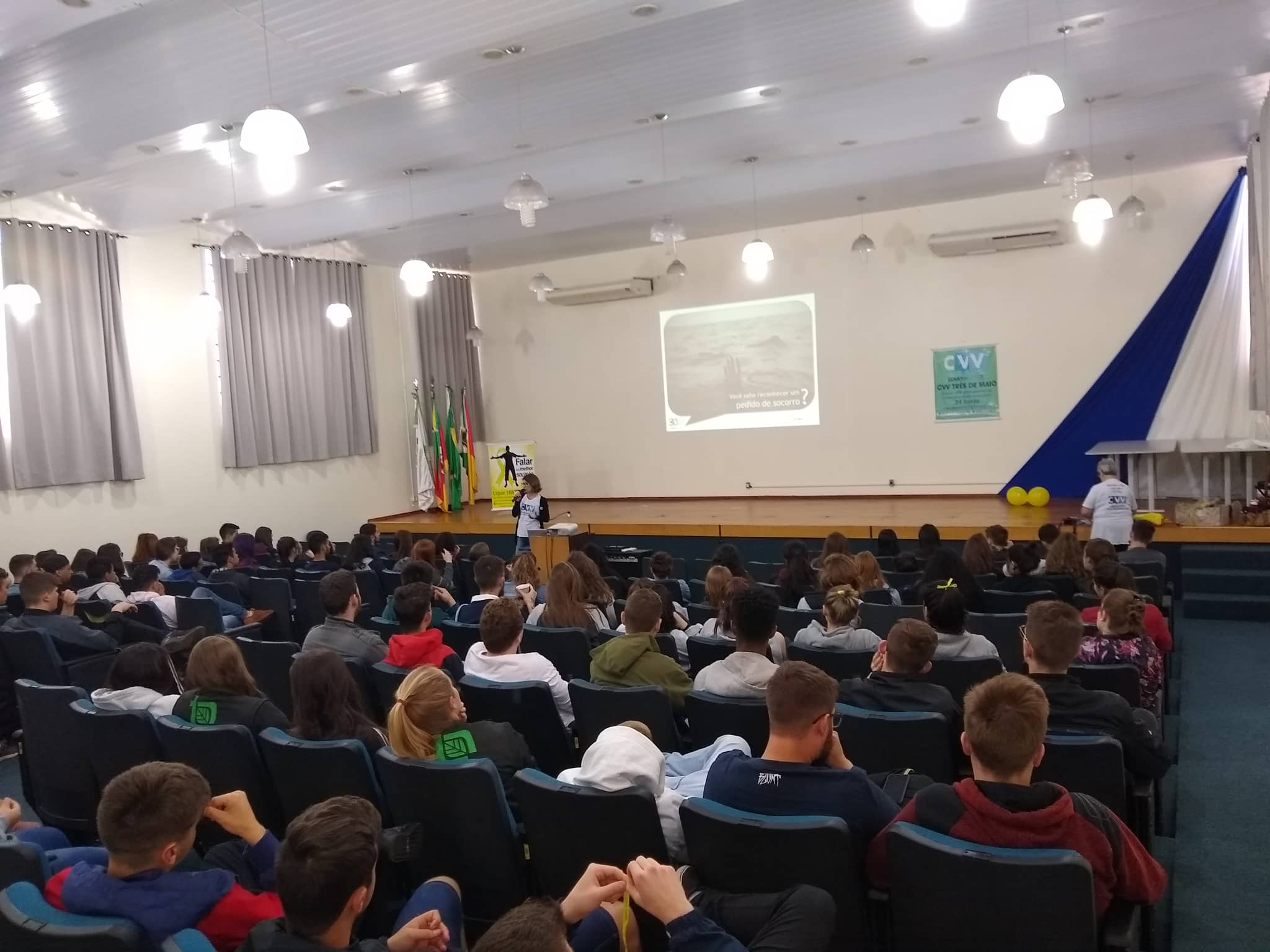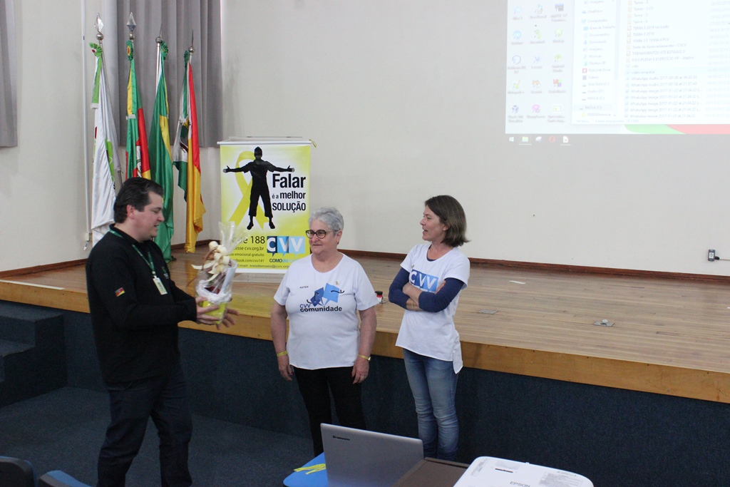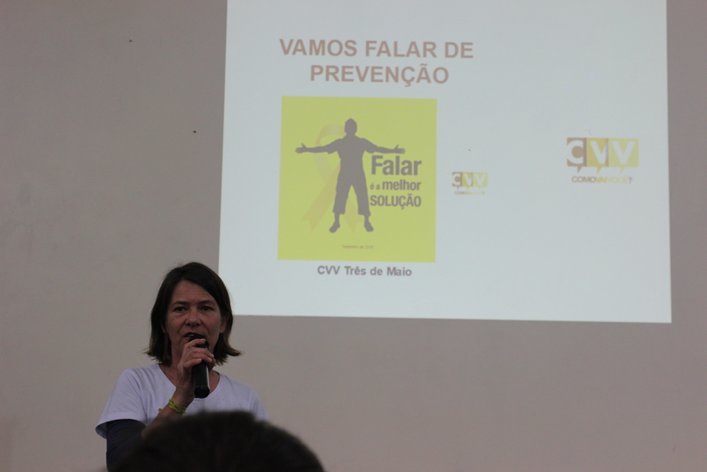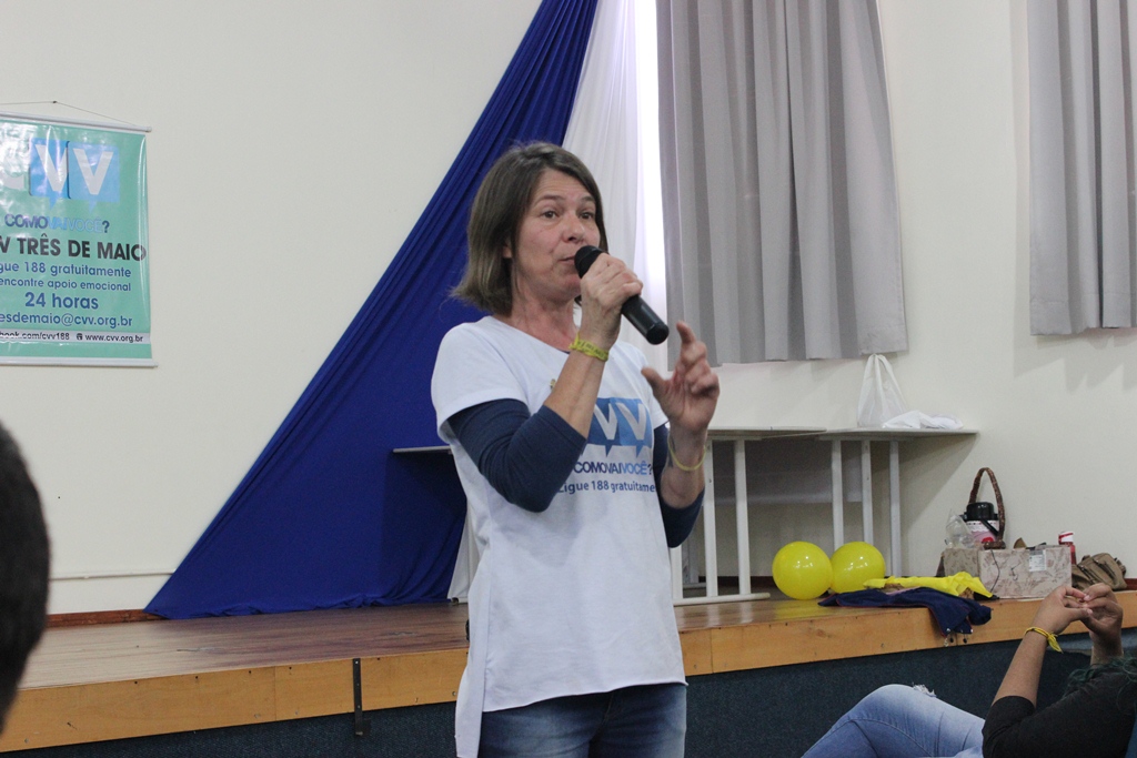 Na ocasião, as voluntárias do CVV de Três de Maio, Cláudia Regina Demo e Aster Hartmann, entregaram aos estudantes materiais informativos e apresentaram dados sobre o suicídio no Brasil e no Mundo. “O suicídio é um assunto complexo, pois ninguém se mata por um único motivo, mas a prevenção é possível e algumas ações podem ser feitas por todas as pessoas. Permitir que as pessoas desabafem e falem sobre seus sentimentos sem receber críticas é um meio de evitar que se pense na morte como solução para as dores”, destacaram as voluntárias.