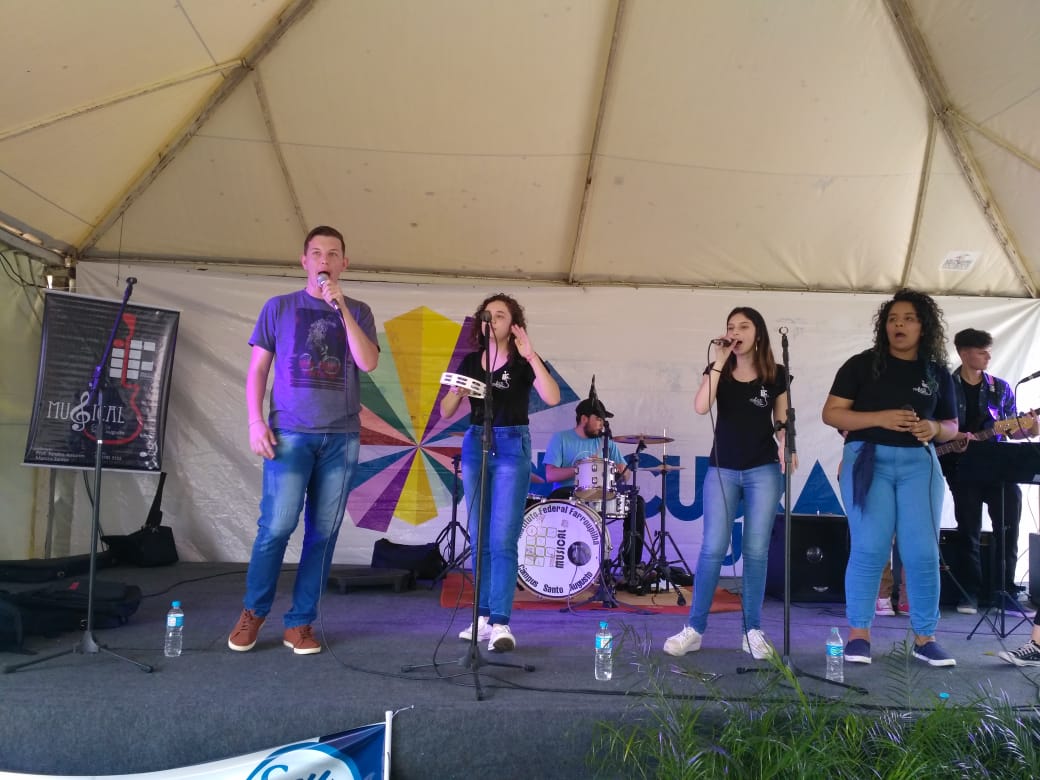O Instituto Federal Farroupilha está participando, de 26 a 28/09, do Descubra UFSM 2019, mostrando os cursos ofertados e os projetos desenvolvidos. O Campus Santo Augusto esteve representado no evento, nesta sexta-feira, dia 27, pela Banda IF Musical, pelos servidores Marcos Santos e Ian Brites, e pelo professor Sandro Amorim de Souza.