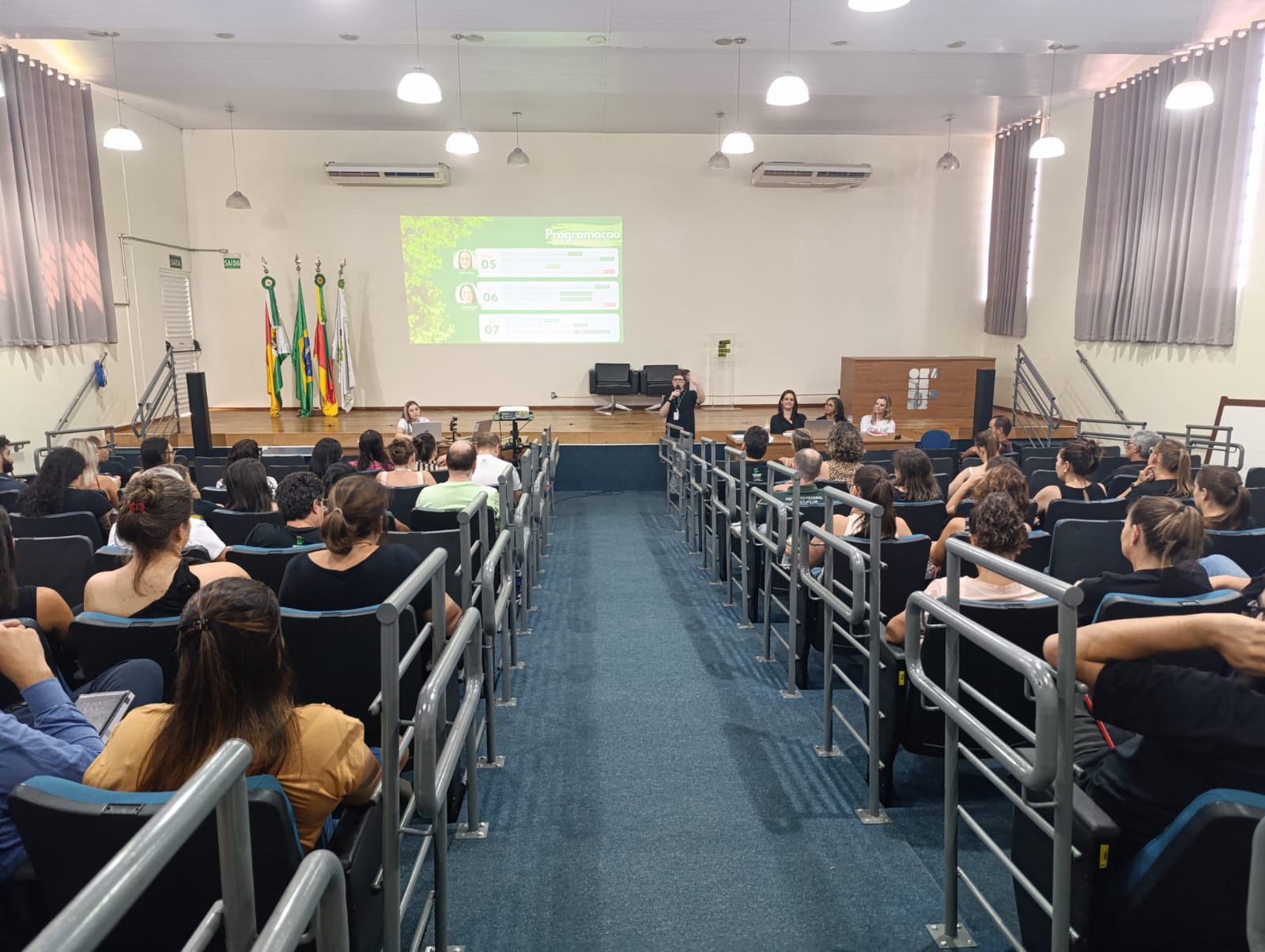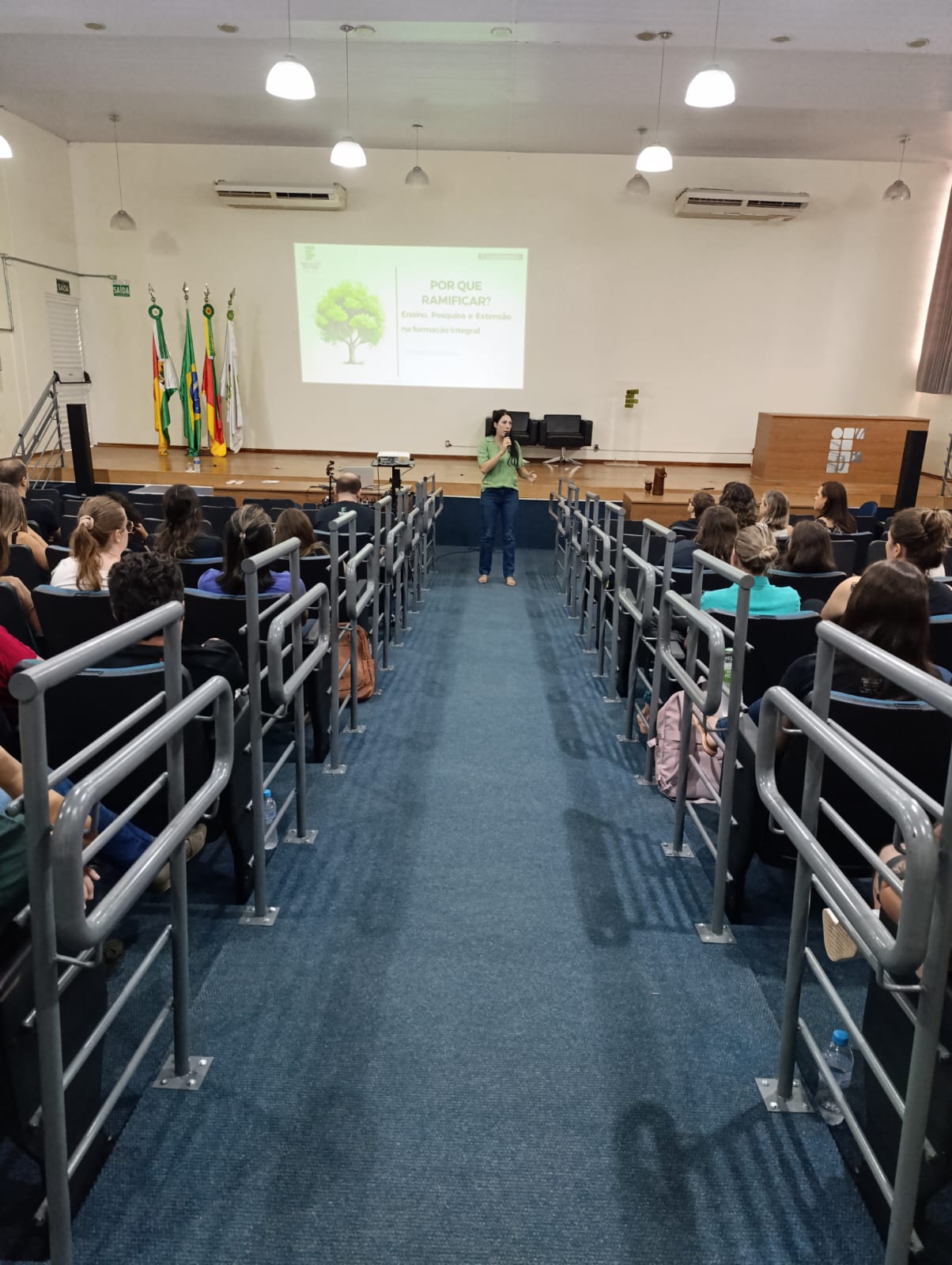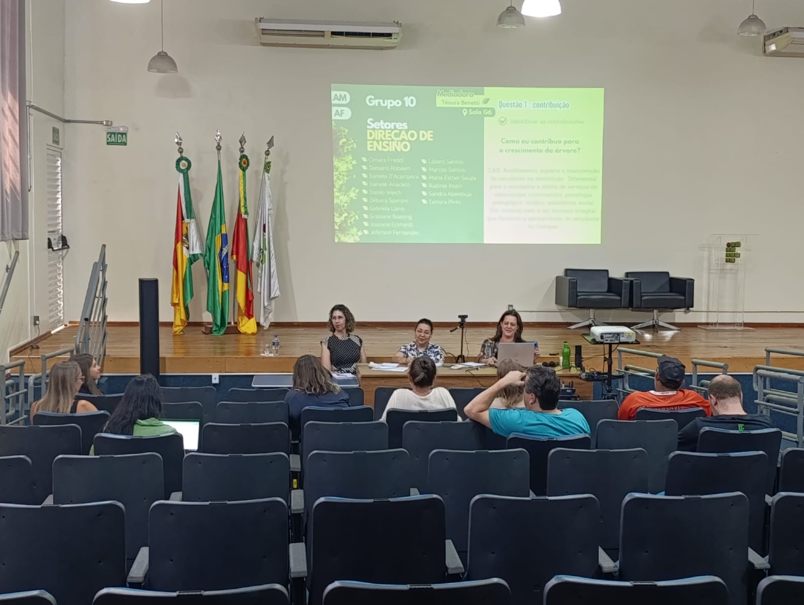 A programação continuou na quinta-feira, dia 06, às 8h, com a exibição do vídeo boas-vindas da Reitora Nídia Heringer, seguida pela palestra da Pró-Reitora de Ensino do IFFar, Patrícia Donitch, tendo como tema “Por que Ramificar? Ensino, Pesquisa e Extensão na formação integral”. Na sequência, aconteceram estudos em grupo, dos quais os resultados serão sistematizados na sexta-feira, dia 07, a partir das 8h.