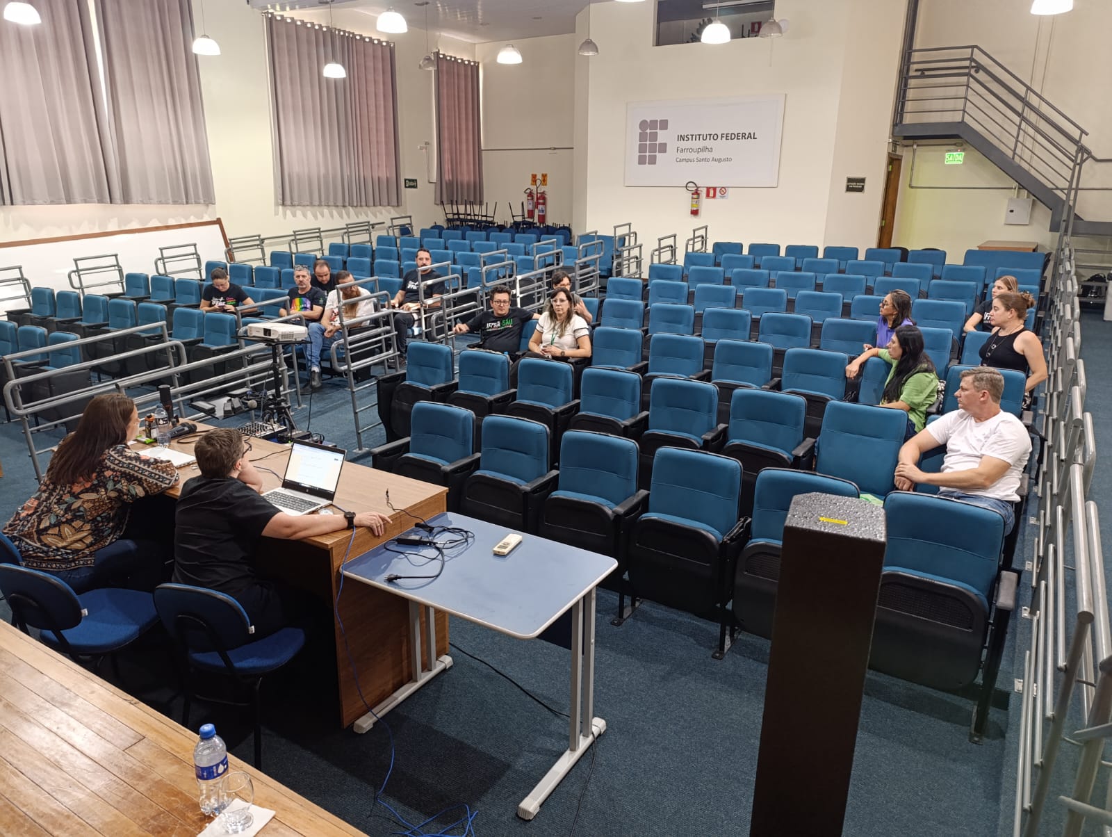 O IFFar – Campus Santo Augusto realizou na tarde de quarta-feira, 05 de março, às 14h, a abertura oficial do ano letivo 2025, no auditório da instituição com a acolhida por parte da Direção aos servidores, seguida por uma atividade de imersão conduzida pela professora Lidiane Walter. Após, todos os servidores foram convidados para participar de um coffee break no refeitório.