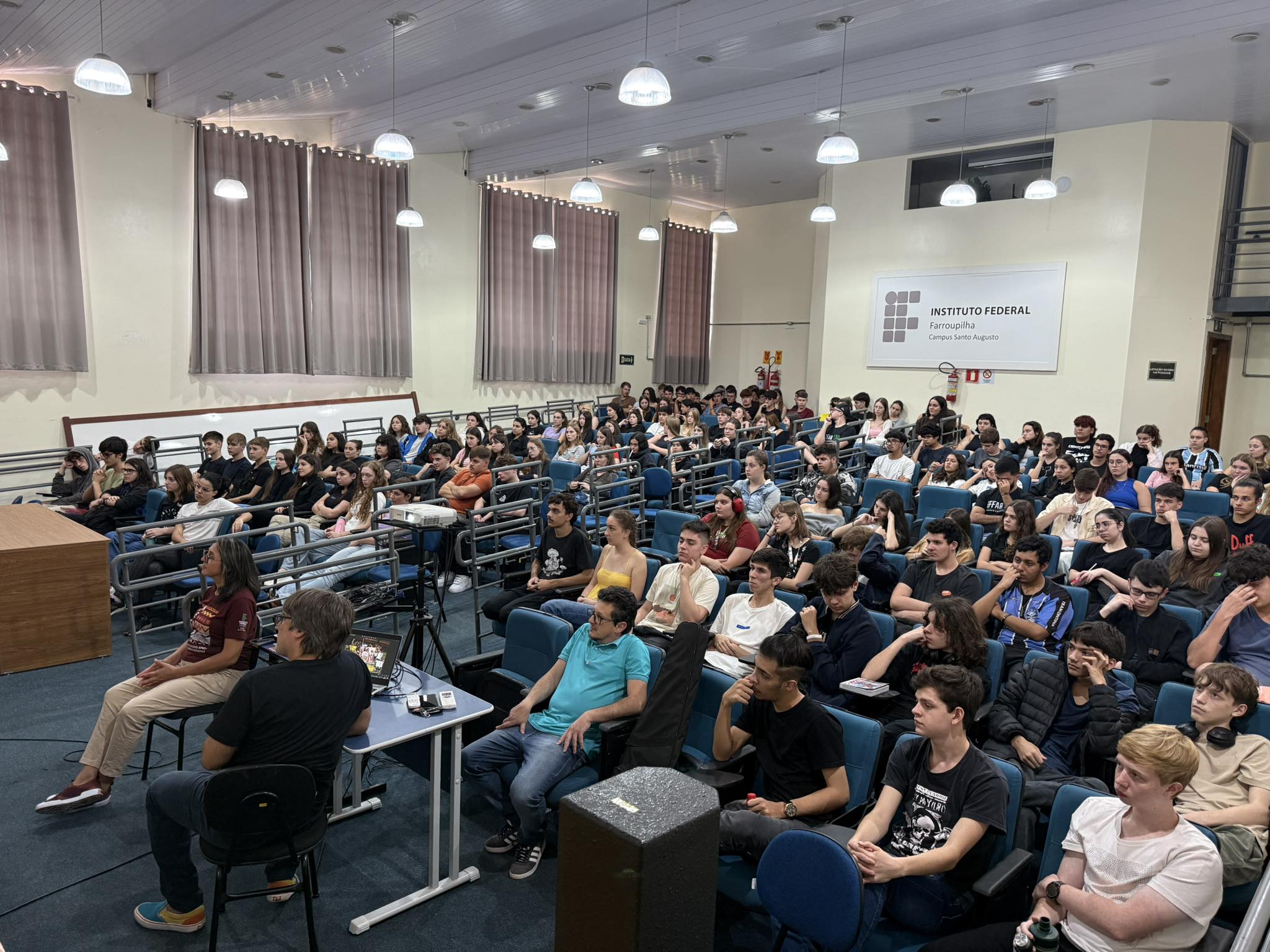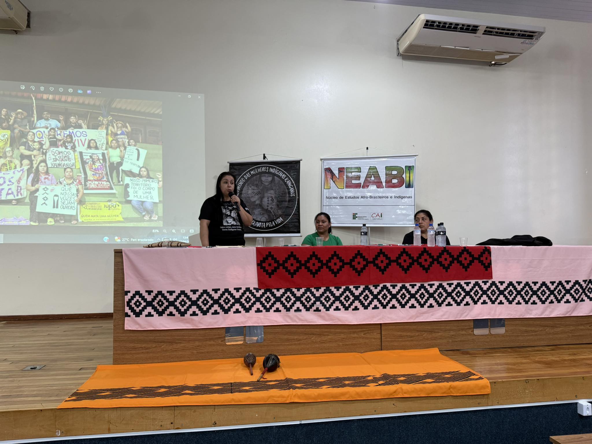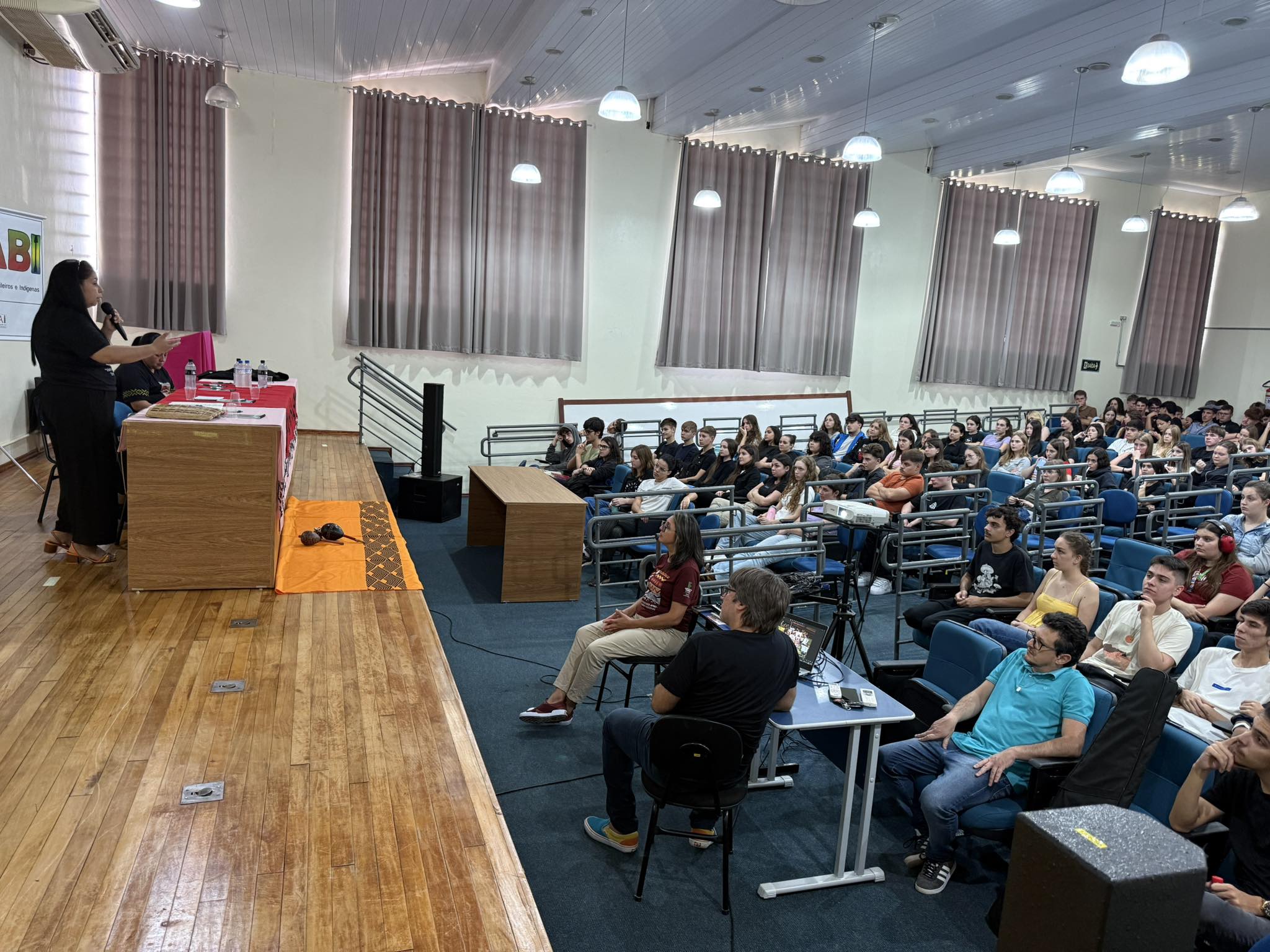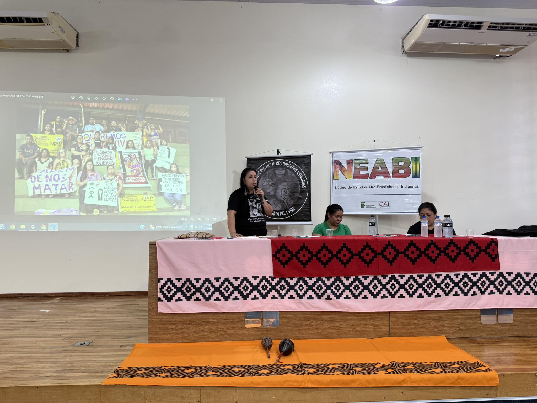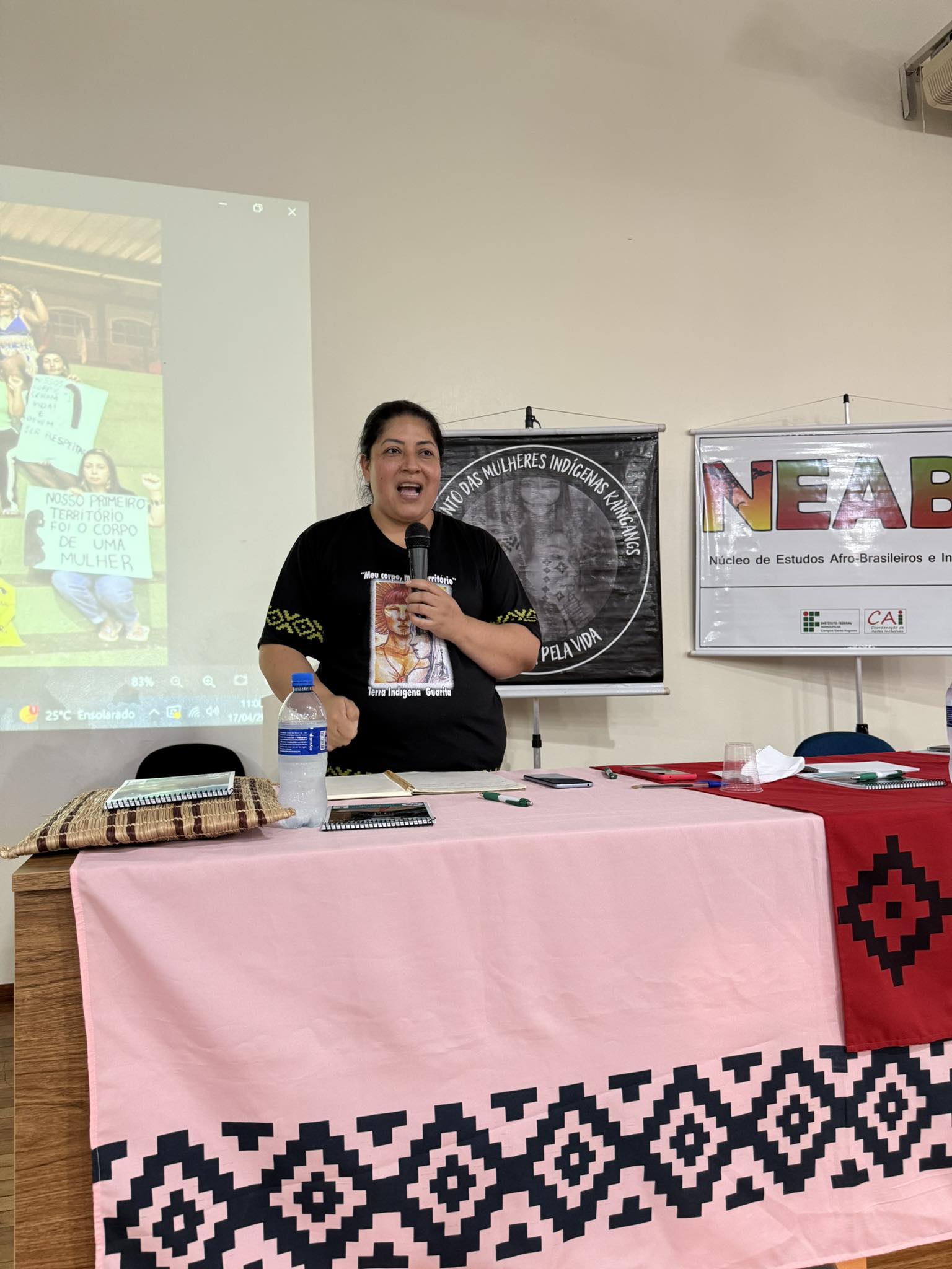 O Núcleo de Estudos Afro-brasileiros e Indígenas (Neabi) do IFFar – Campus Santo Augusto, promoveu nesta quinta-feira, 17 de abril, um evento alusivo ao Dia dos Povos Indígenas (19 de abril) e ao Dia da Terra (22 de abril), com o tema “Vozes Indígenas em defesa da cultura, do território e da vida”. As atividades, voltadas para os estudantes dos cursos técnicos integrados ao ensino médio, foram divididas em dois momentos, pela manhã, às 9h50, e à tarde, às 13h30.