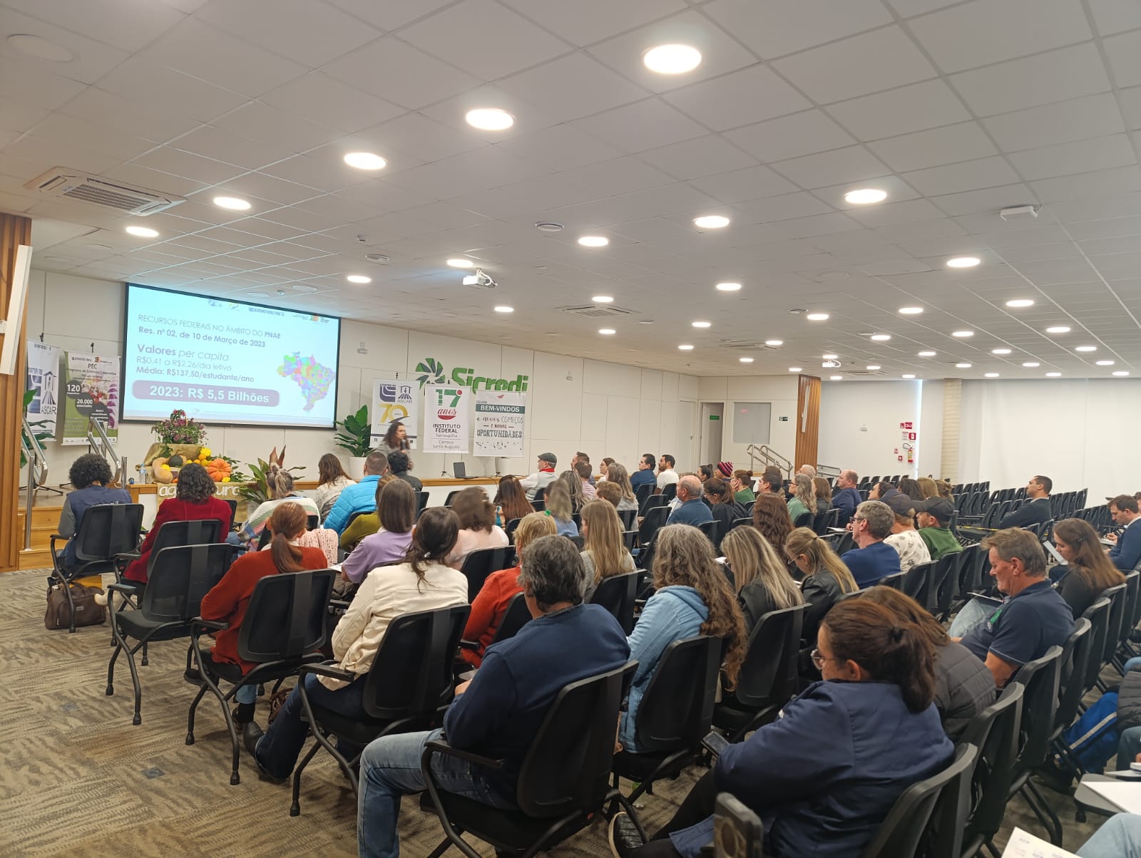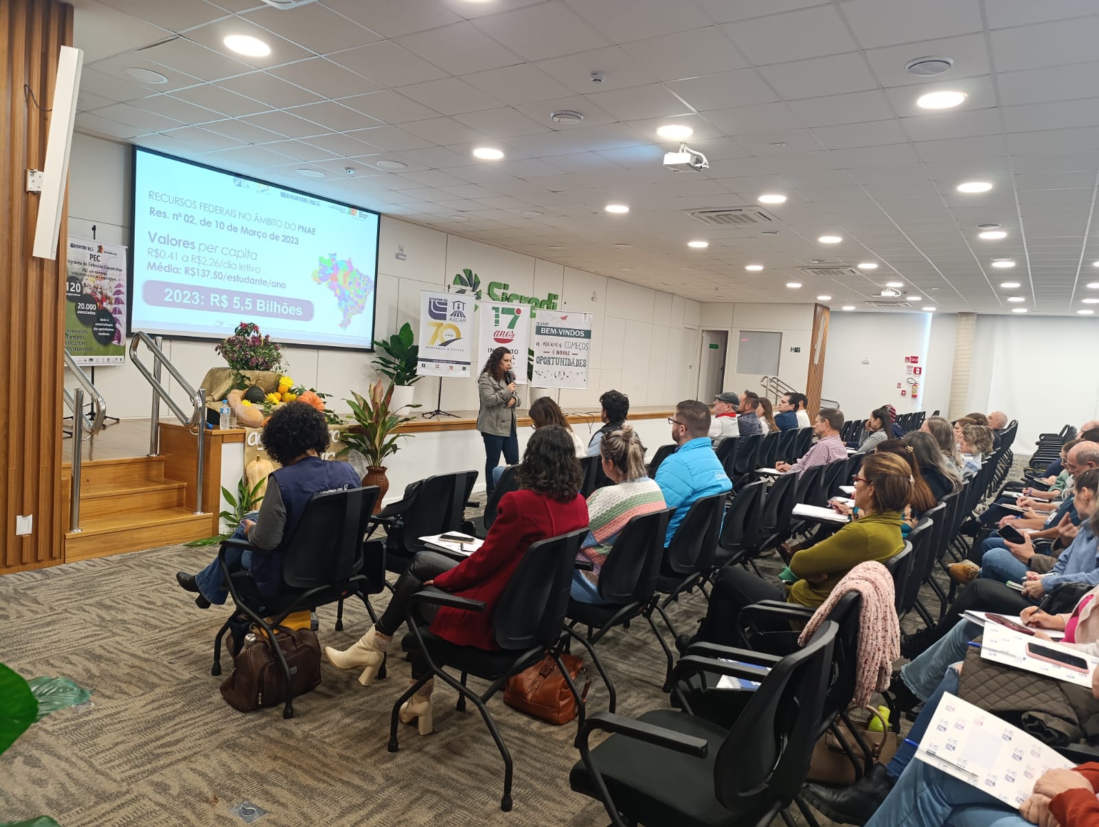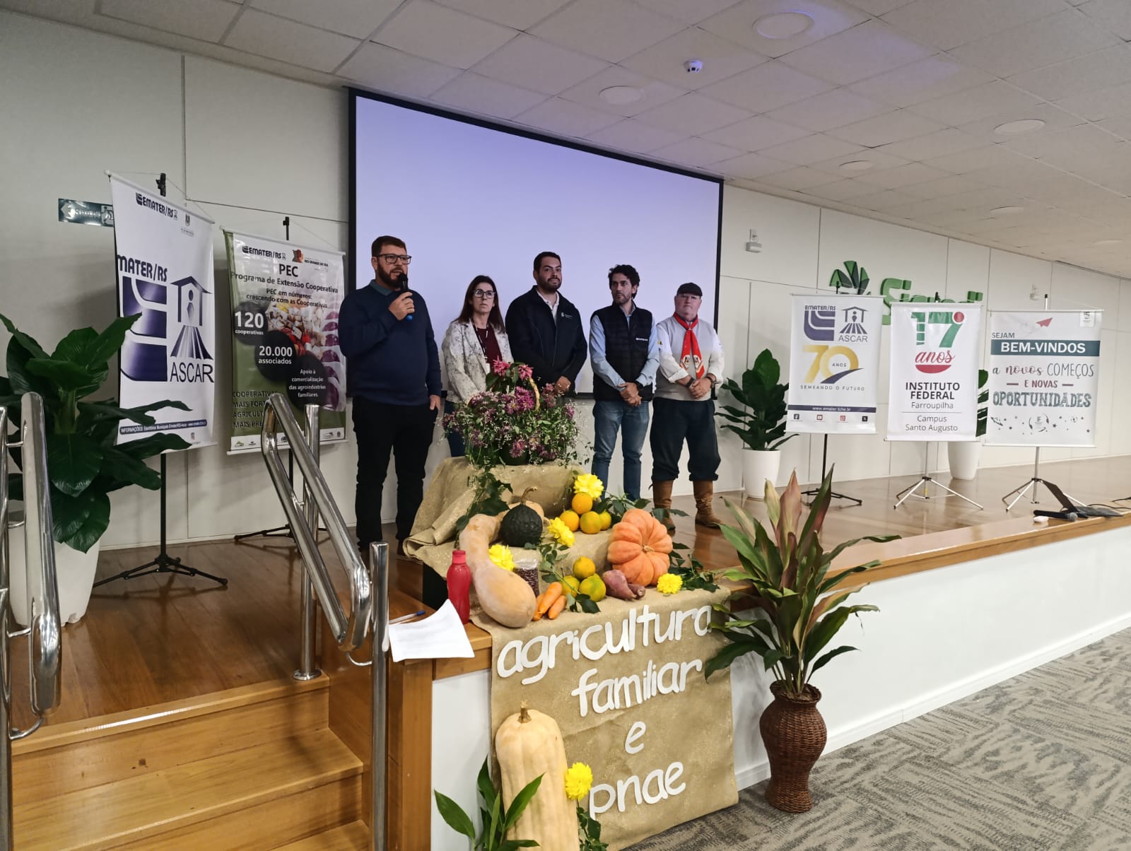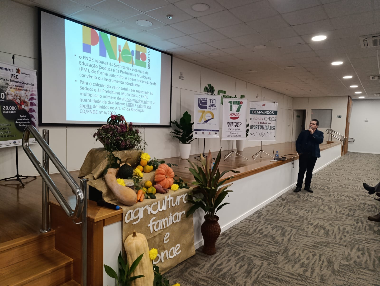 A EMATER/RS-Ascar, em parceria com o IFFar – Campus Santo Augusto e o Ministério do Desenvolvimento Agrário e Agricultura Familiar (MDA), promoveu na tarde de quarta-feira, 04 de junho, um importante Seminário Regional sobre o Programa Nacional de Alimentação Escolar (PNAE) e sua conexão com a Agricultura Familiar. O encontro reuniu agricultores, gestores públicos, estudantes e entidades da região para debater a construção de uma nova matriz produtiva de alimentos, mais sustentável, saudável e inclusiva.