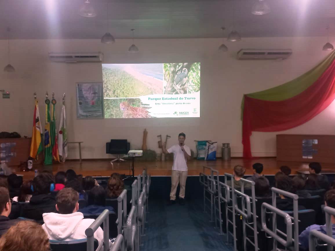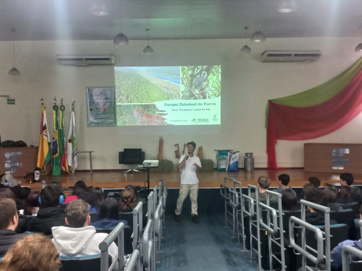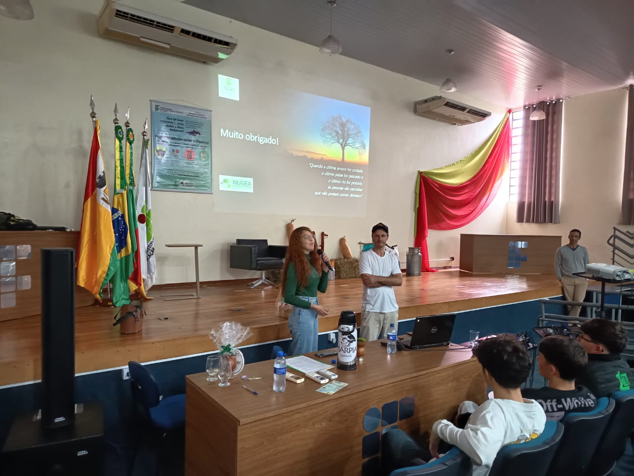O Núcleo de Gestão e Educação Ambiental - Nugea, do IFFar - Campus Santo Augusto, promoveu no dia 05 de junho, pela manhã, uma palestra alusiva ao Dia do Meio Ambiente, no auditório da instituição, para os alunos dos cursos técnicos integrados ao ensino médio.