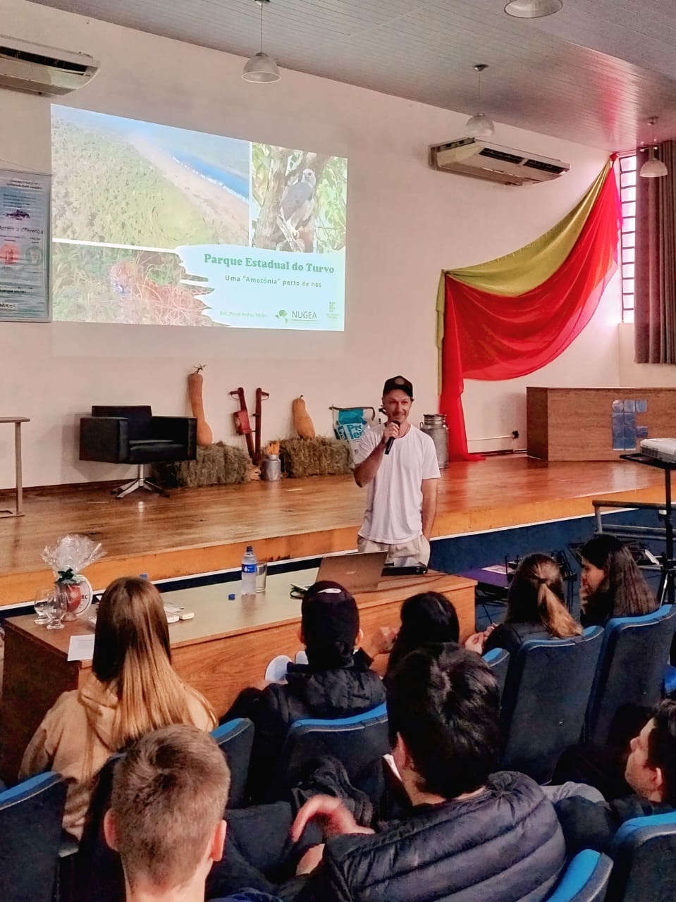A palestra ministrada pelo professor Dante Andres Meller, teve como tema: Parque estadual do Turvo: uma "Amazônia" perto de nós.
