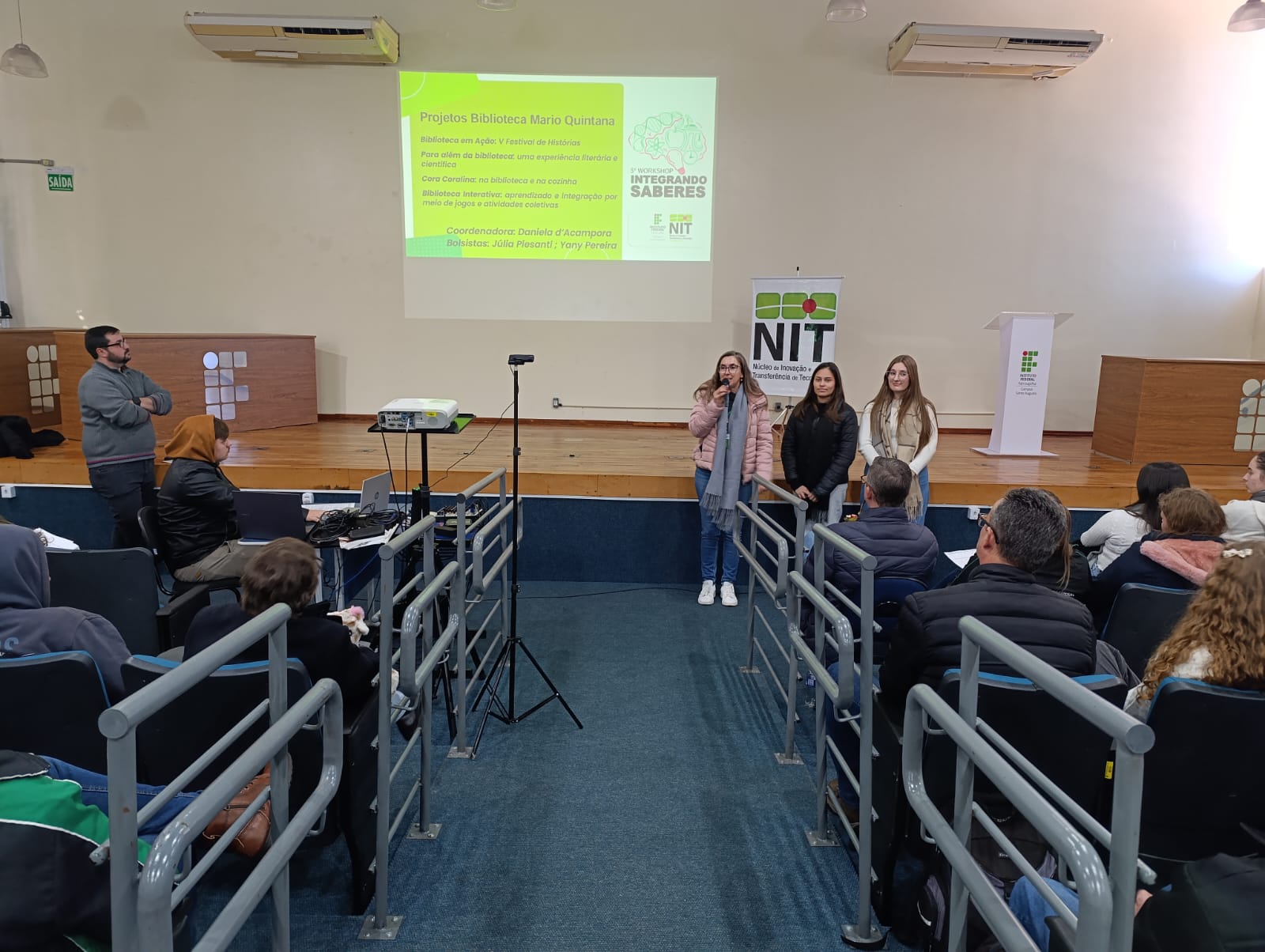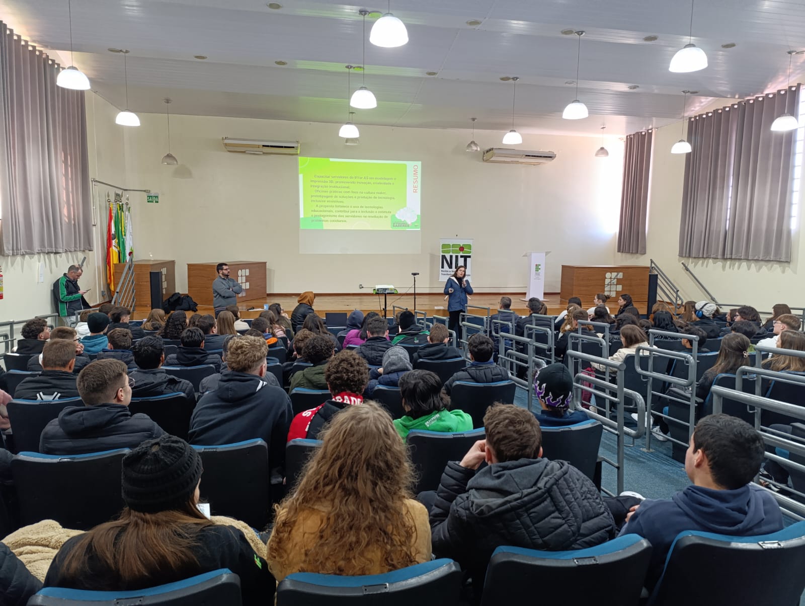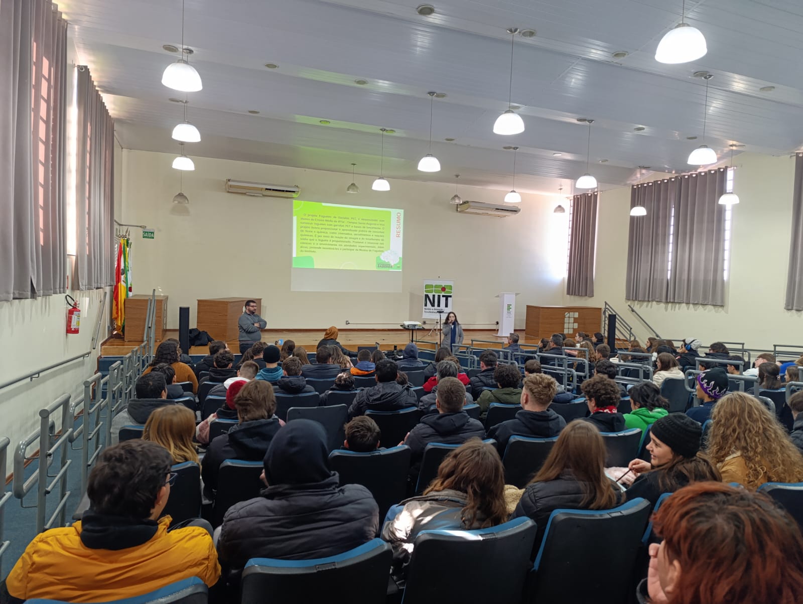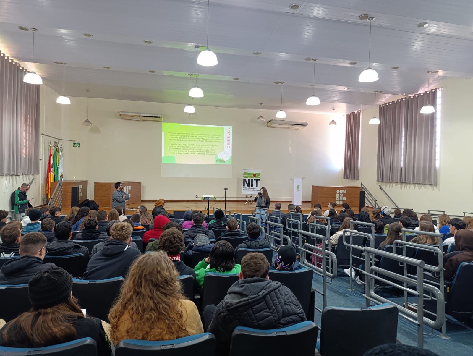 O Núcleo de Inovação e Tecnologia (NIT) do IFFar – Campus Santo Augusto, em parceria com a equipe da Incubadora Tecnológica, realizou nesta terça-feira, dia 1º de julho, às 13h30, no auditório da instituição, a 5ª edição do Workshop “Integrando Saberes”, tendo como objetivo apresentar, de forma dinâmica e objetiva, à comunidade acadêmica e local, os projetos, núcleos e ações em desenvolvimento no campus.