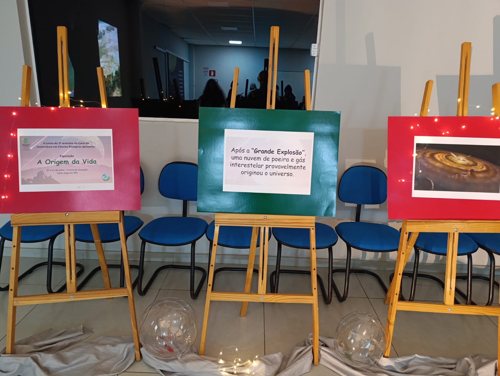 Os estudantes do 1º semestre do Curso de Licenciatura em Ciências Biológicas do IFFar – Campus Santo Augusto organizaram, de 7 a 11 de julho, a exposição "A Origem da Vida", no auditório do Centro Municipal de Inovação. O evento esteve aberto ao público nos dias 7, 8 e 9 no período noturno e nos dias 10 e 11 à tarde.