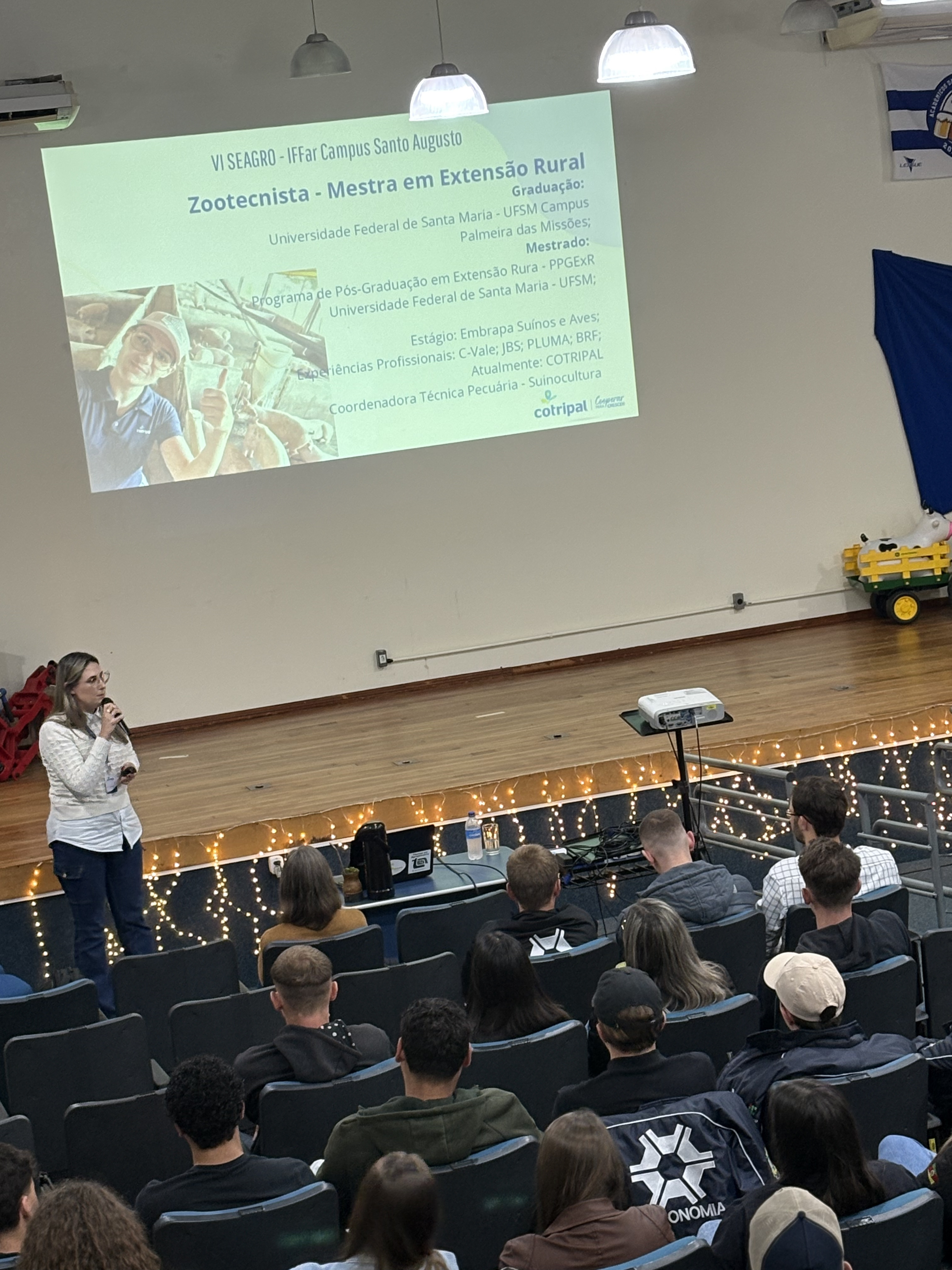 De 18 a 21 de agosto, os acadêmicos do curso superior de Bacharelado em Agronomia do IFFar – Campus Santo Augusto promoveram a VI SEAGRO - Semana Acadêmica da Agronomia, com o objetivo de promover a troca de conhecimentos e experiências entre estudantes, professores, profissionais e a comunidade em geral, trazendo reflexões sobre os rumos da agricultura e os desafios para construir um campo mais sustentável e inovador.