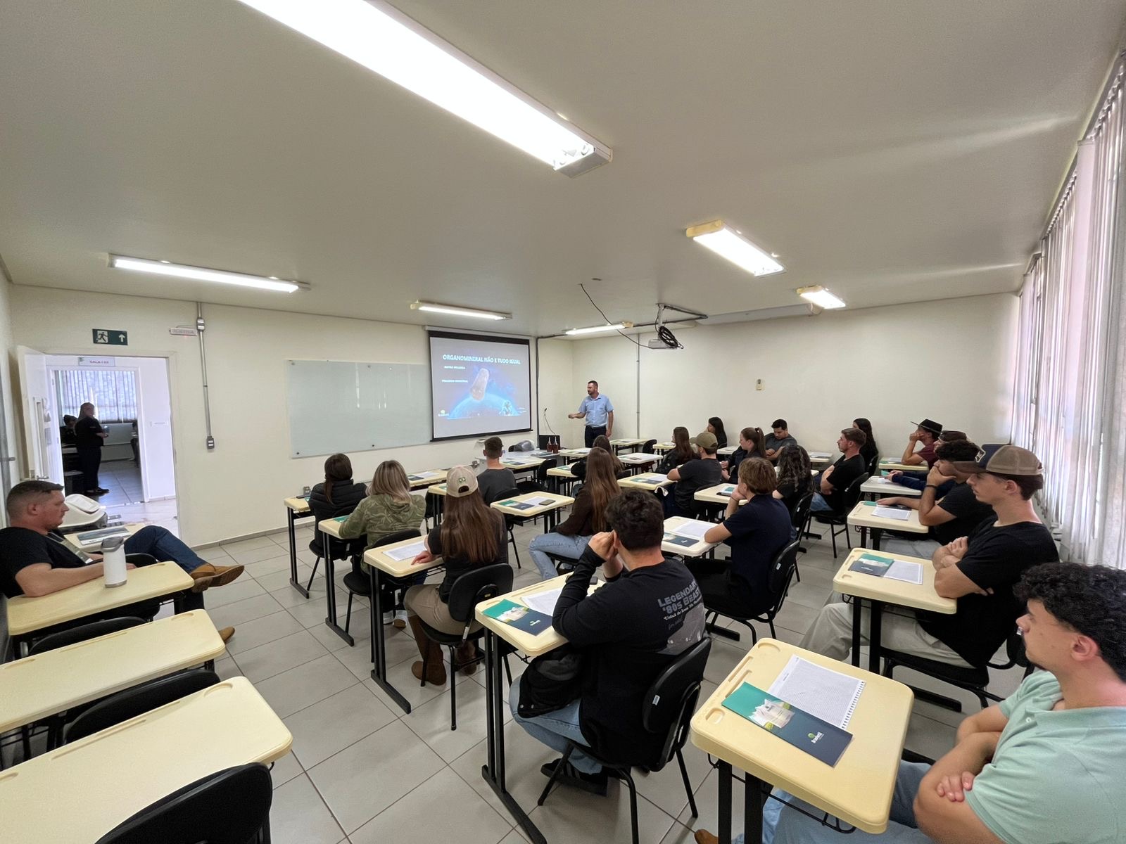 O evento teve início no dia 18, às 19h30, no auditório da instituição, com a palestra sobre “Manejo assertivo de insetos – praga na cultura do milho”, com Glauber Stürmer, seguida por “Nutrição estratégica para a cultura da Soja”, com Andrei Zapani.