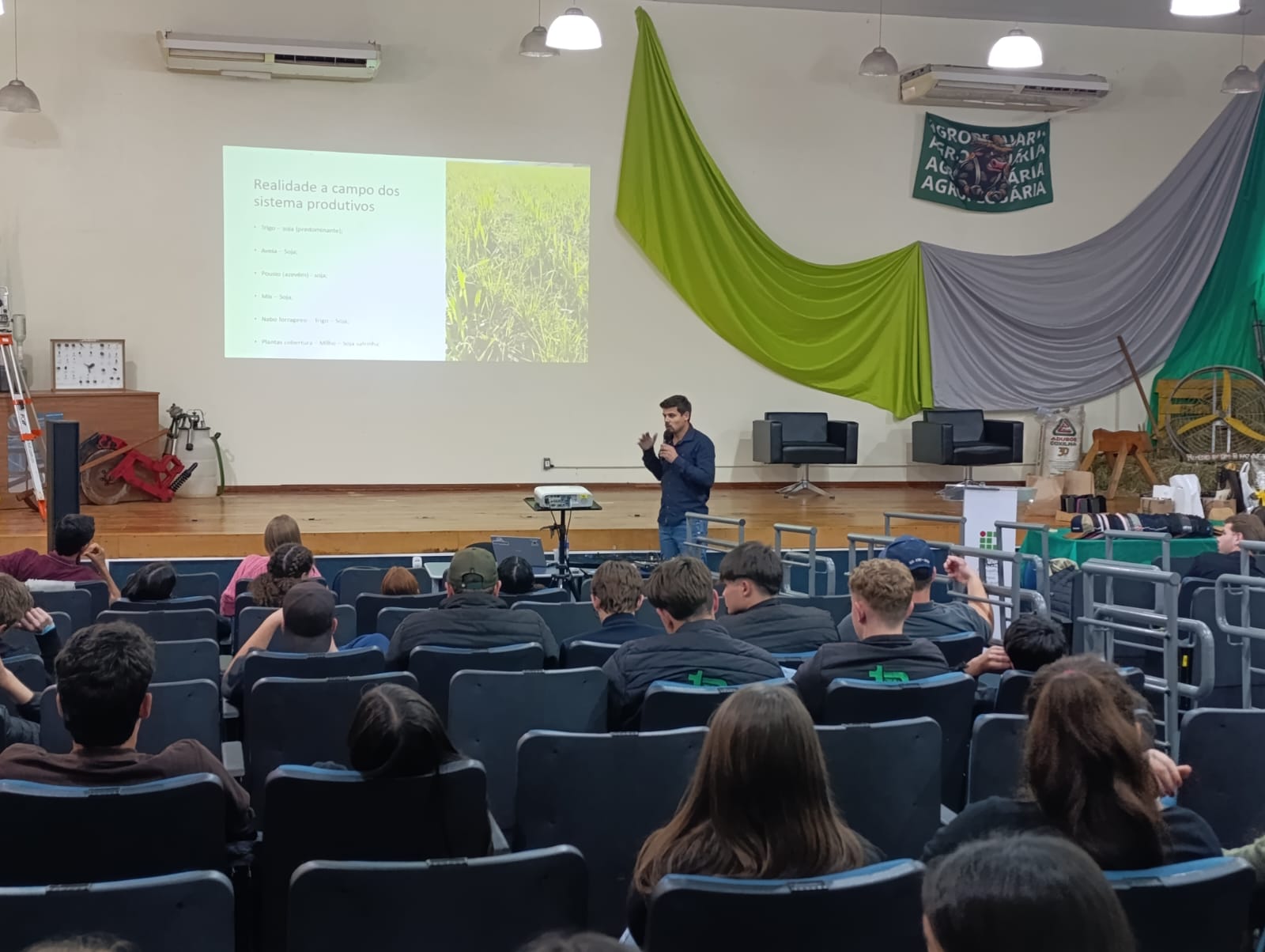 O evento teve início na segunda-feira, dia 22, às 10h, no auditório da instituição, com a palestra sobre “Prognóstico climático para os próximos meses e recomendações agronômicas”, ministrada por Sidinei Radons. À tarde, às 13h30 aconteceu a palestra com o tema “Do asfalto à estrada de terra: descobrindo propósito no agro”, ministrada por Mateus Strada, seguida pela palestra sobre Rotação de Culturas, com Leandro Bridi.