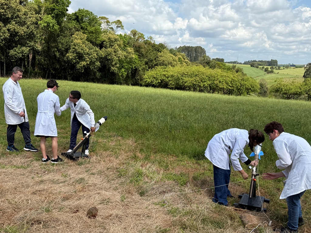 Foi realizada na tarde de segunda-feira, 29 de setembro, no IFFar – Campus Santo Augusto, a seletiva local da Mostra de Foguetes 2025, competição onde alunos lançam “foguetes” construídos com materiais recicláveis e impulsionados por reações químicas. Os lançamentos foram realizados sob a coordenação do professor Carlos Wyrepkowski, em área aberta, e puderam ser acompanhados por estudantes e servidores da instituição.