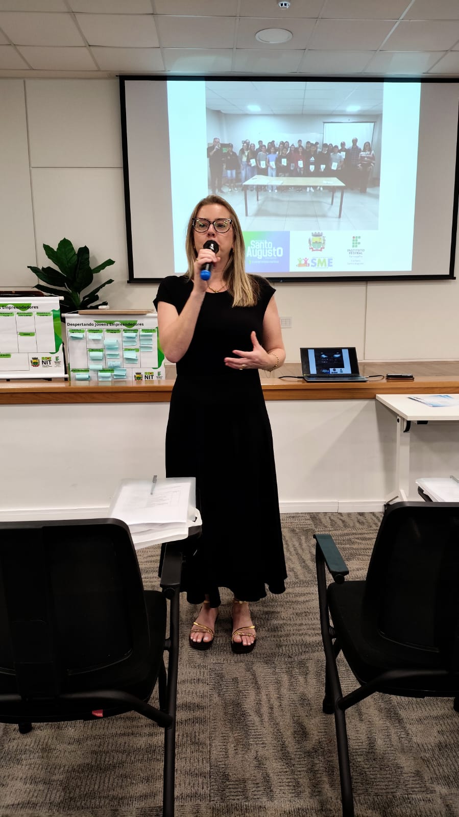 Na ocasião, seis grupos de estudantes do 8º ano das escolas municipais apresentaram suas ideias de empreendimento, resultado do trabalho coletivo orientado pelas temáticas de empreendedorismo, matemática financeira e educação fiscal. Cada grupo teve até 5 minutos para apresentar sua proposta de negócio sobre produtos ou serviços que não são ofertados em Santo Augusto.