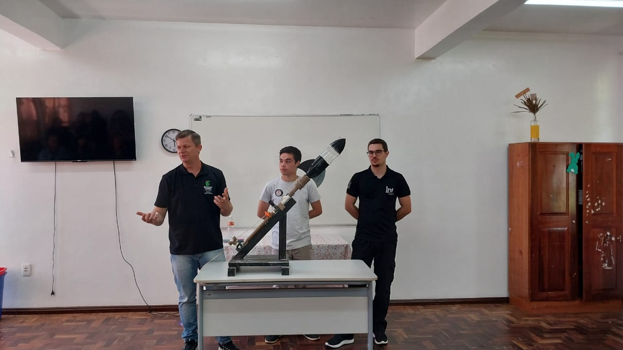 A atividade realizada envolveu o projeto de ensino “Foguetes de Garrafas PET”, coordenado pelo professor Carlos Wyrepkowski e contou com a participação do aluno do 3º ano do técnico em Administração, Higor Bueno e do acadêmico de Licenciatura em Computação, Luan Delaflora Guth.