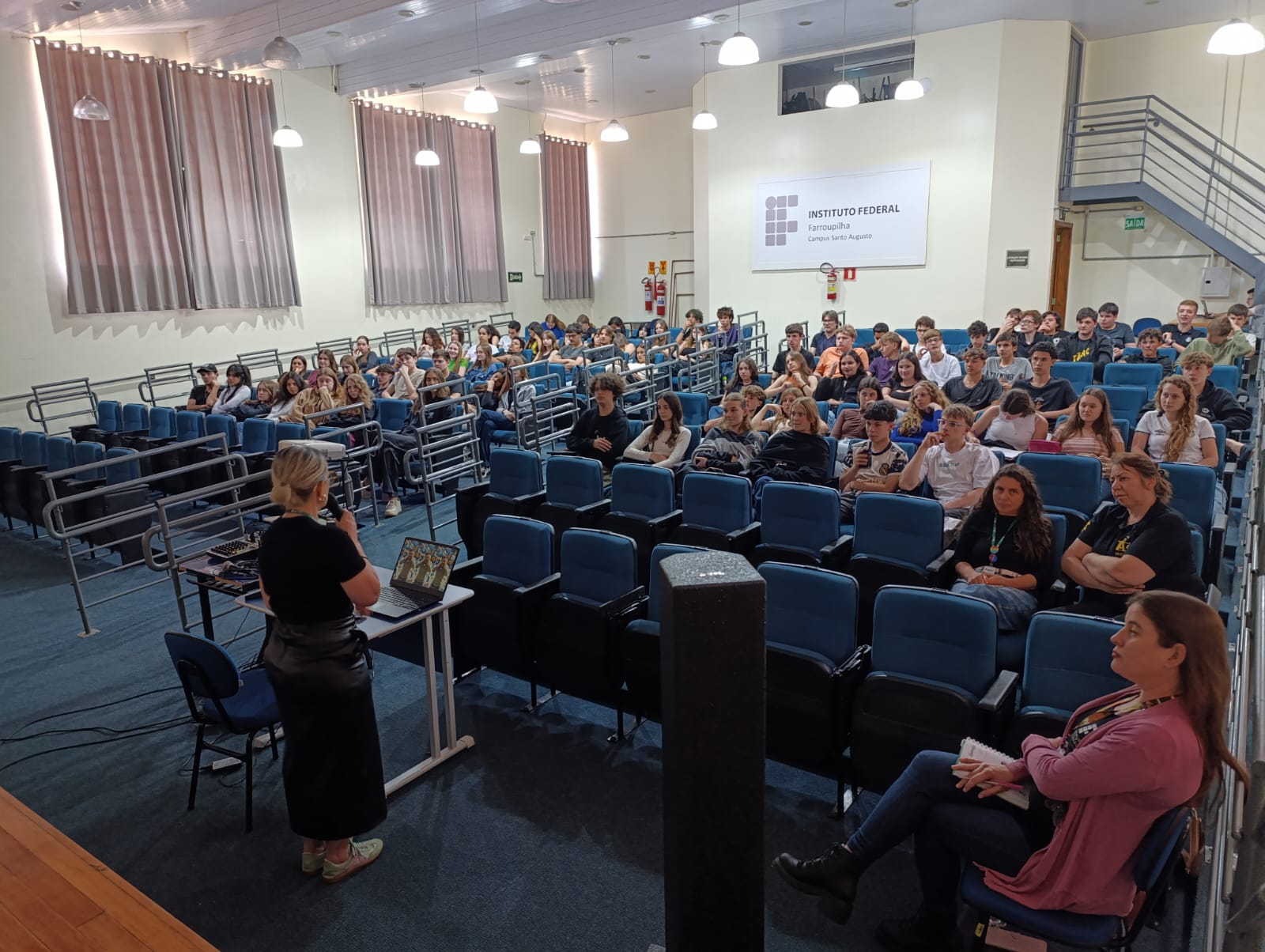 Os estudantes dos 1º e 2º anos dos cursos técnicos integrados ao ensino médio do IFFar – Campus Santo Augusto participaram na tarde do dia 18 de novembro, no auditório da instituição de uma palestra com o tema “Geração Conectada: desafios e riscos em um mundo tecnológico”, ministrada pela Diretora de Ensino e professora do Campus Panambi, Drª Sirlei Rigodanzo.