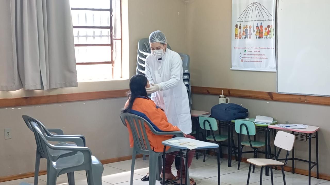 Na tarde de terça-feira, 16 de dezembro, foi realizada uma ação do projeto, no Centro de Referência em Assistência Social – CRAS Carmen Maria Andrighetto, onde as cirurgiãs-dentistas, Débora Cristina Speroni, Cristiane Maria Speroni e Elis Regina Agnes Weiller, realizaram exames de diagnósticos com integrantes do grupo de idosos.