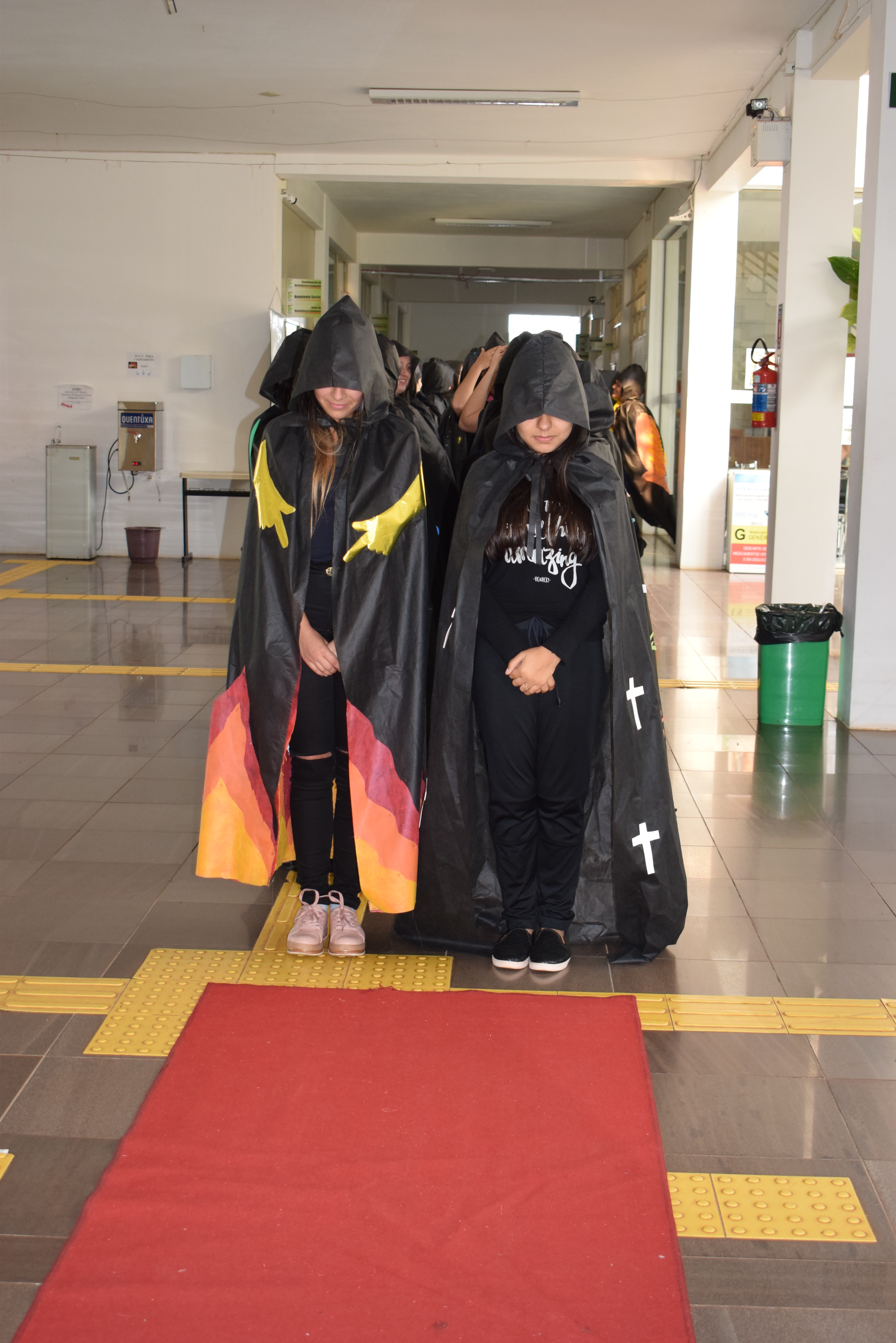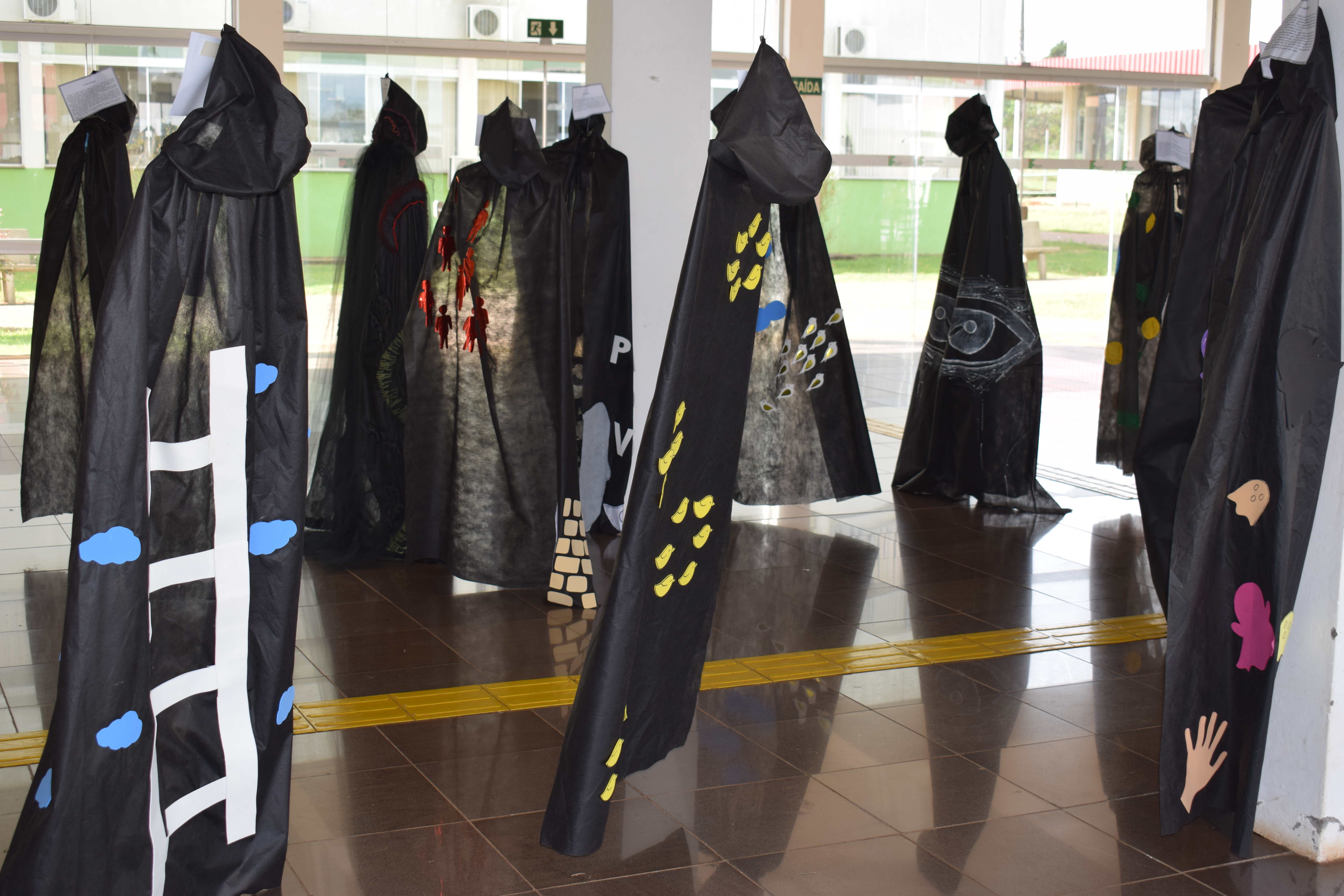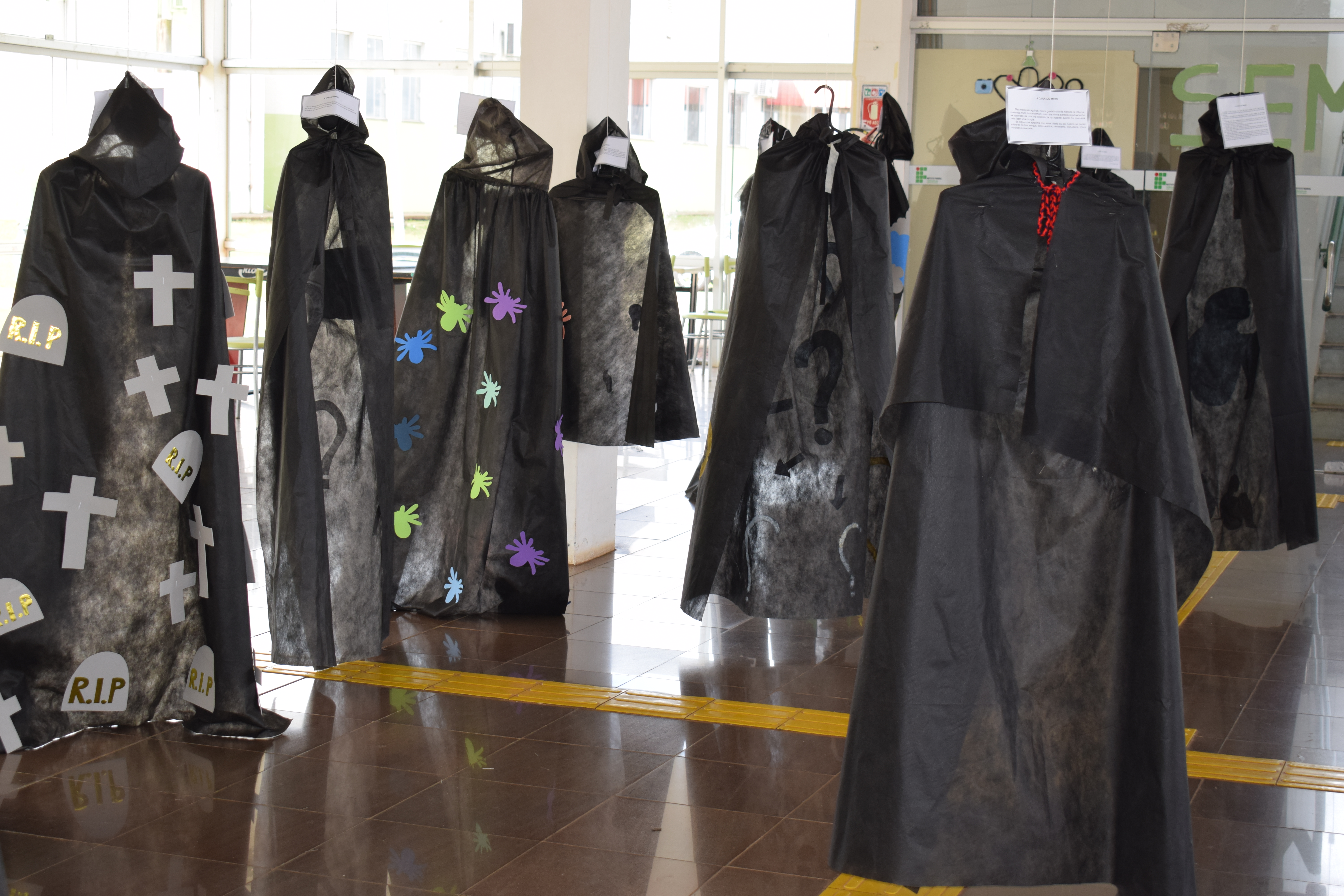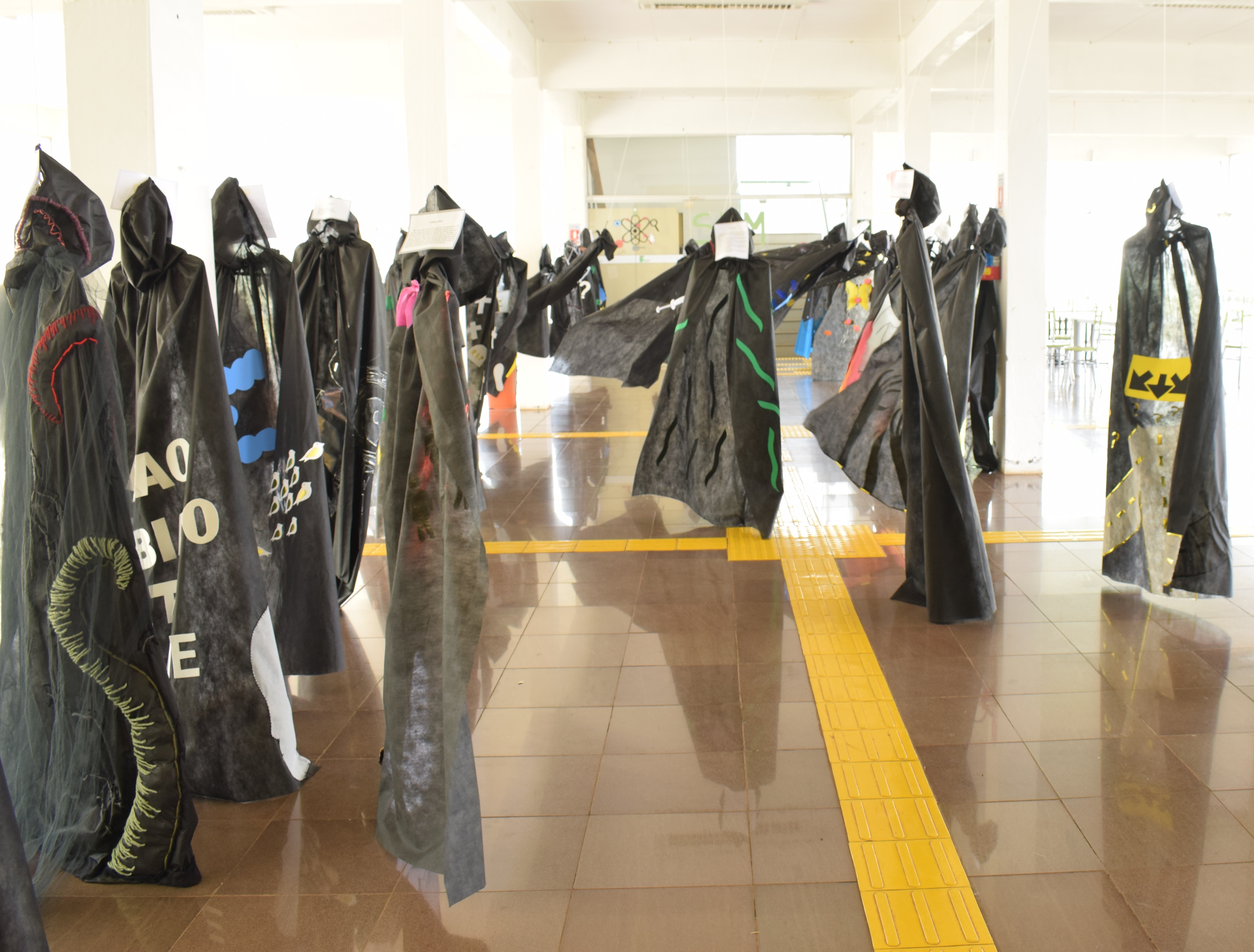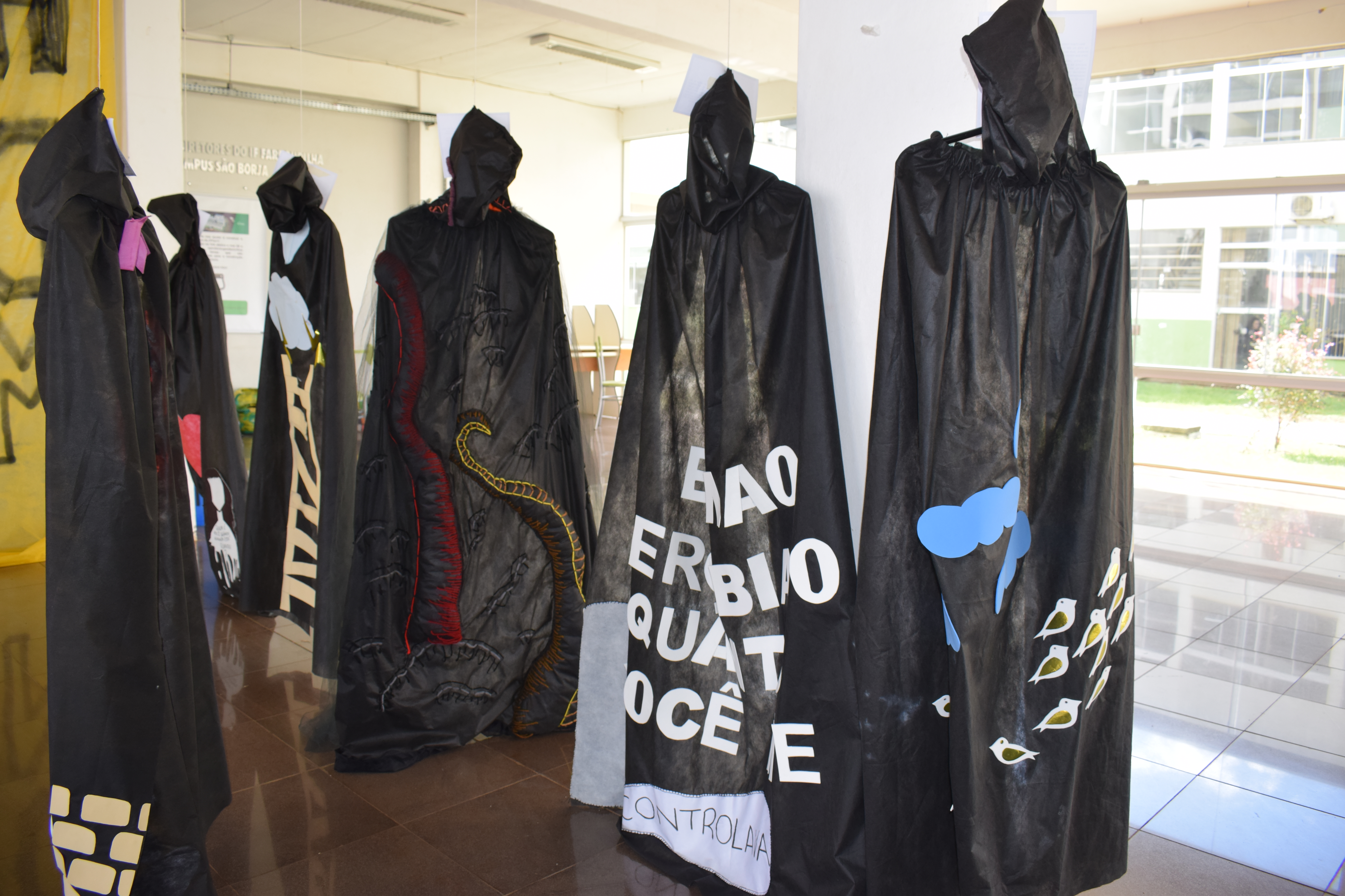 Dessa forma surgiu a ideia da exposição “A cara do medo – o que te paralisa?”, exposta na Área de Convivência do Campus São Borja. A exposição teve a abertura na última terça-feira, dia 10, pela manhã, com uma encenação teatral dos anfitriões. Os alunos participantes desfilaram com suas capas, expondo seus medos e, ao final do desfile, deixaram suas capas caírem ao chão, revelando a superação, a vitória. Um momento para debater um assunto que foi tabu, mas que hoje merece atenção.