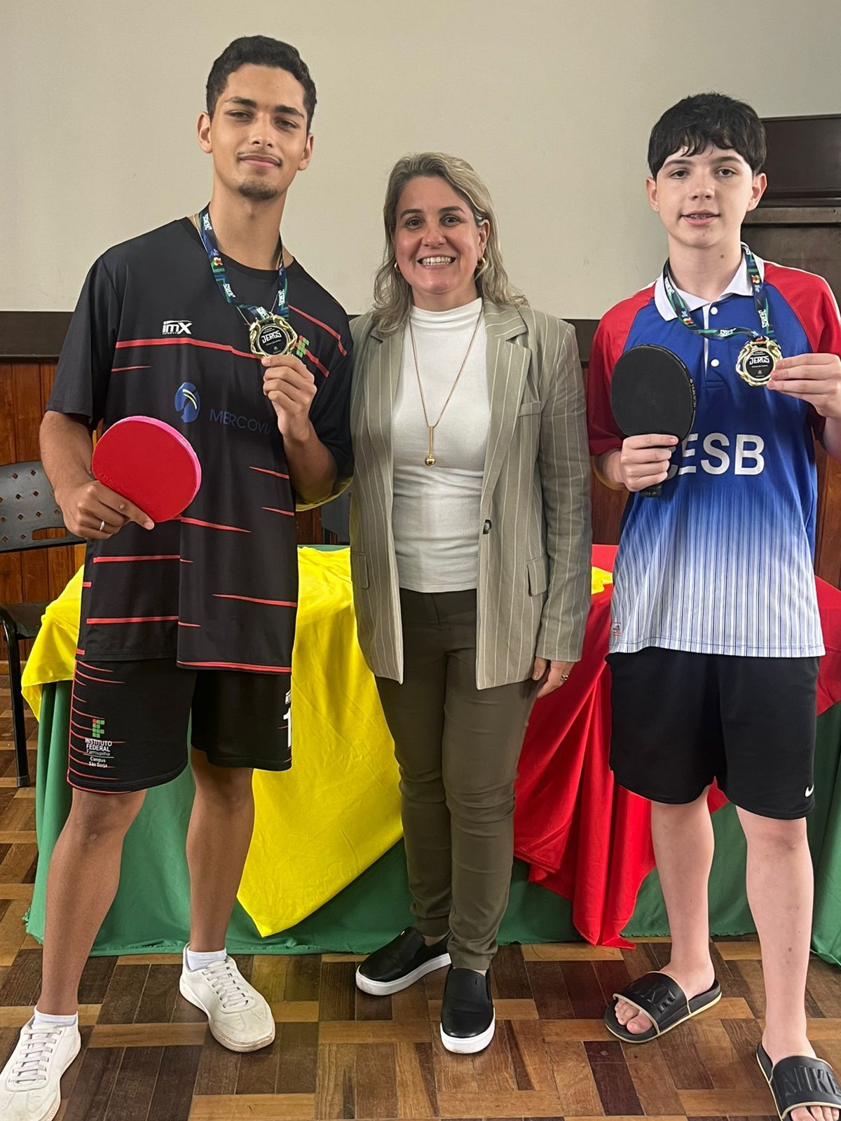 O aluno Gabriel Pinheiro foi o grande destaque no tênis de mesa masculino, conquistando títulos nas fases municipal, Coordenadoria (CRE) e regional do JERGS, além do vice-campeonato estadual em Canoas. No feminino, Clarissa Caetano se destacou com o título municipal e o vice na etapa CRE. Os atletas também participaram do JEIF e da Olimpíada da Unipampa, onde as duplas obtiveram bons resultados.