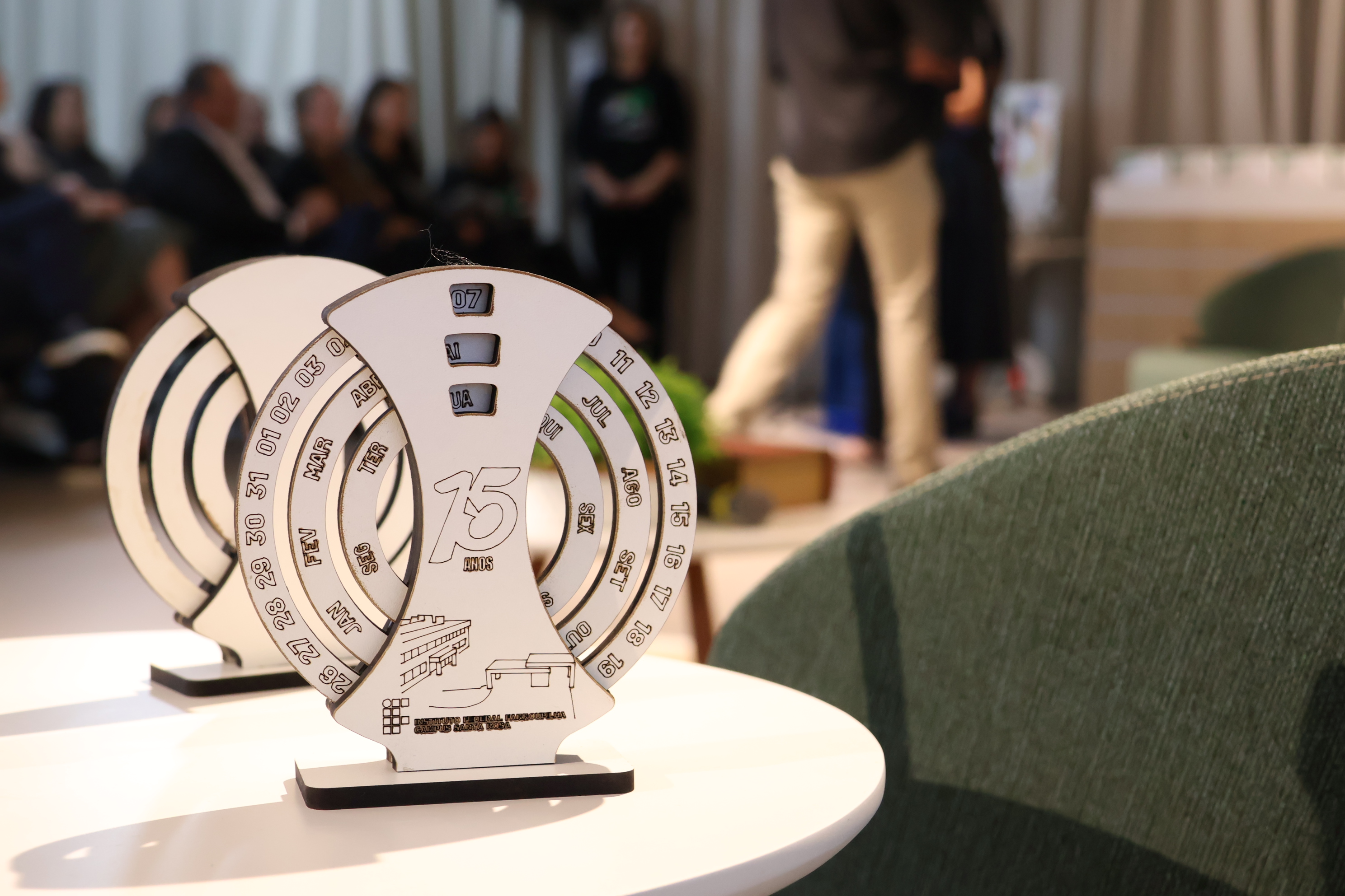 Durante a solenidade, também foi exibido um vídeo comemorativo com imagens da trajetória do campus e realizadas homenagens simbólicas, como a entrega de quadros confeccionados por alunos do curso de Móveis.