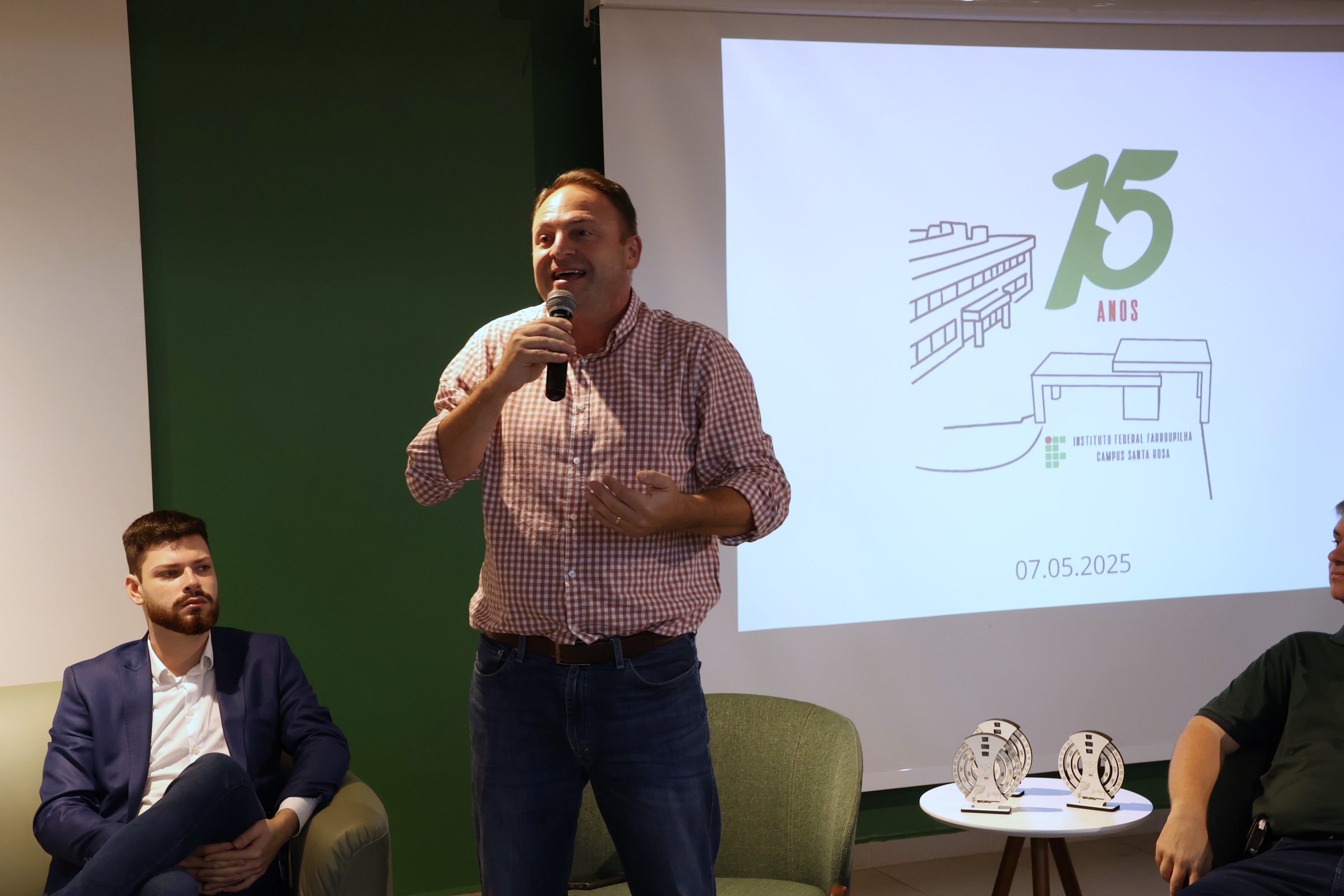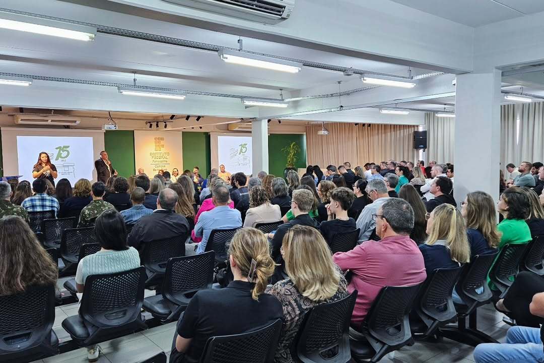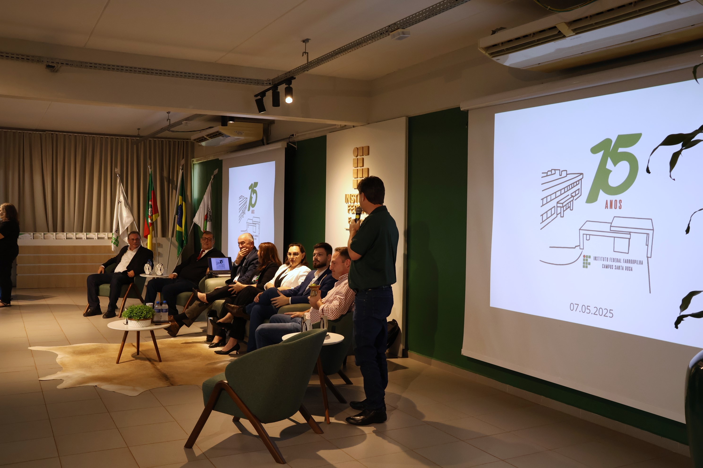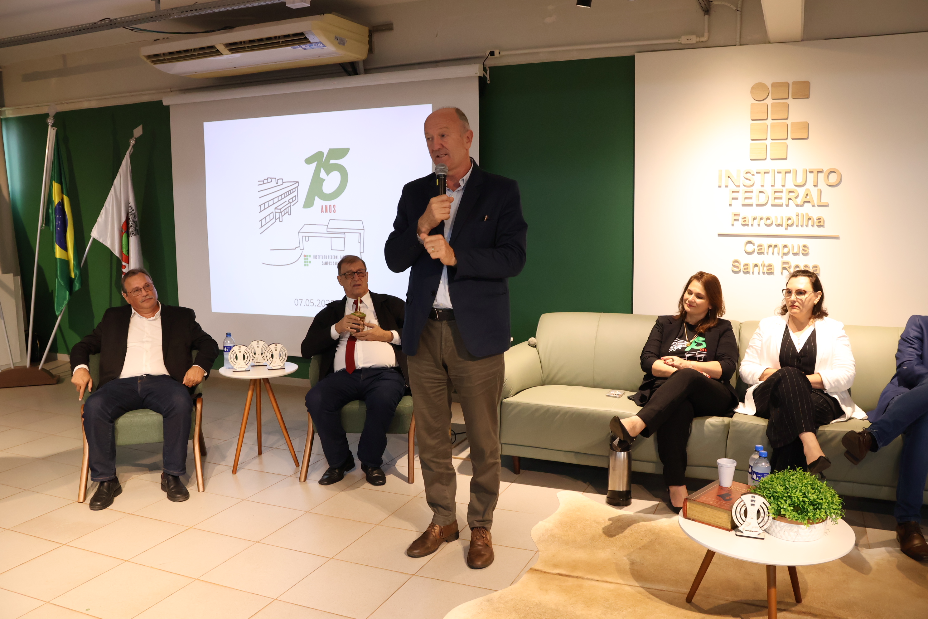O Instituto Federal Farroupilha (IFFar) comemorou, nesta quarta-feira (7), os 15 anos de funcionamento do Campus Santa Rosa. A cerimônia oficial, realizada no auditório da unidade, reuniu autoridades, servidores, estudantes e representantes da comunidade regional para celebrar a trajetória da instituição, marcada pelo compromisso com a educação pública, gratuita e de qualidade.