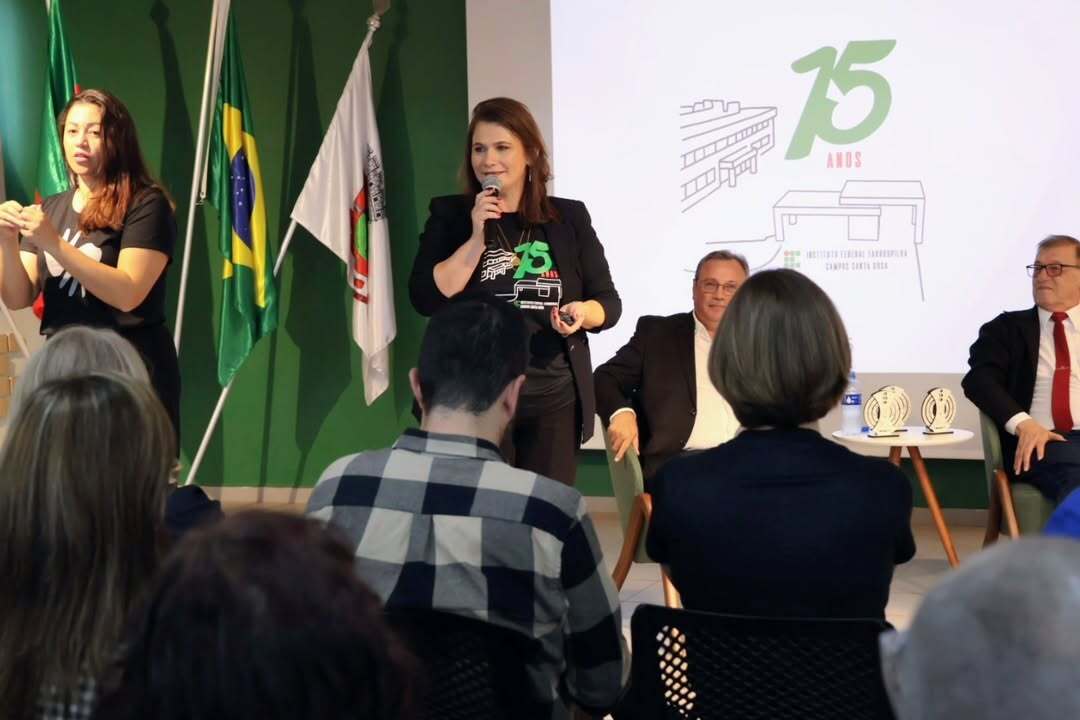 Em nome dos estudantes e servidores, a diretora-geral da unidade, professora Analice Marchezan, expressou sua gratidão a todos que contribuíram para a construção da história do campus. “A gente lembra desde os primeiros dias que nascemos. Então, nós precisávamos deste encontro para unir o nascimento ao debutar e agradecer a todas as pessoas que fazem parte desta história. E, sim, um agradecimento a toda a comunidade que apoia, que está junto da nossa Instituição em todas as oportunidades”, afirmou.