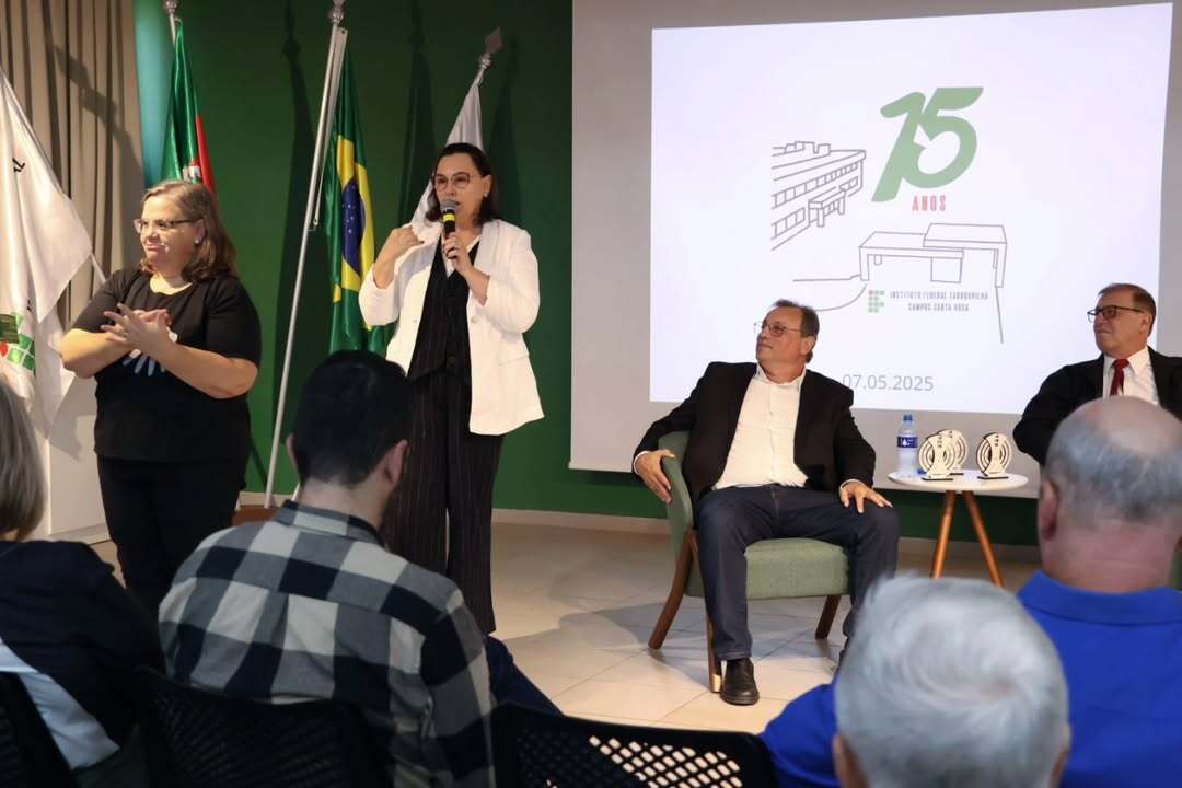 A reitora do IFFar, professora Nídia Heringer, também destacou o papel do campus para a transformação social da região. “Esses 15 anos foram construídos com muito esforço coletivo, parcerias e sonhos. Hoje, o campus é referência regional não apenas na formação de profissionais, mas também como espaço de transformação social”, enfatizou.