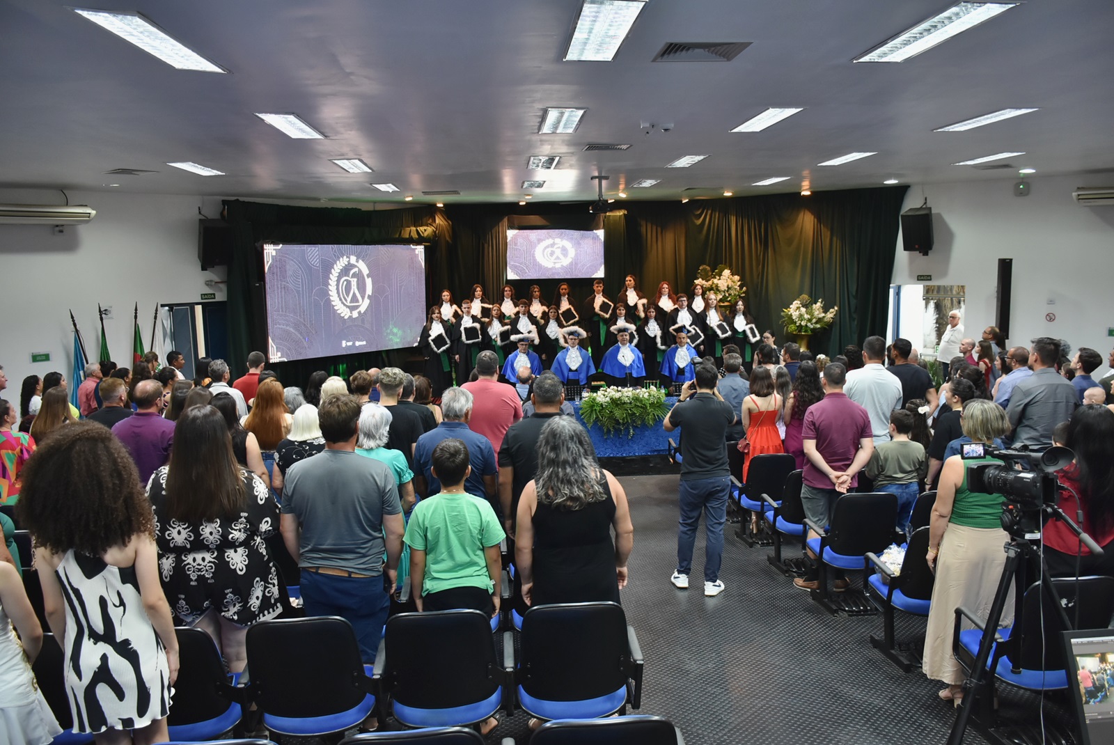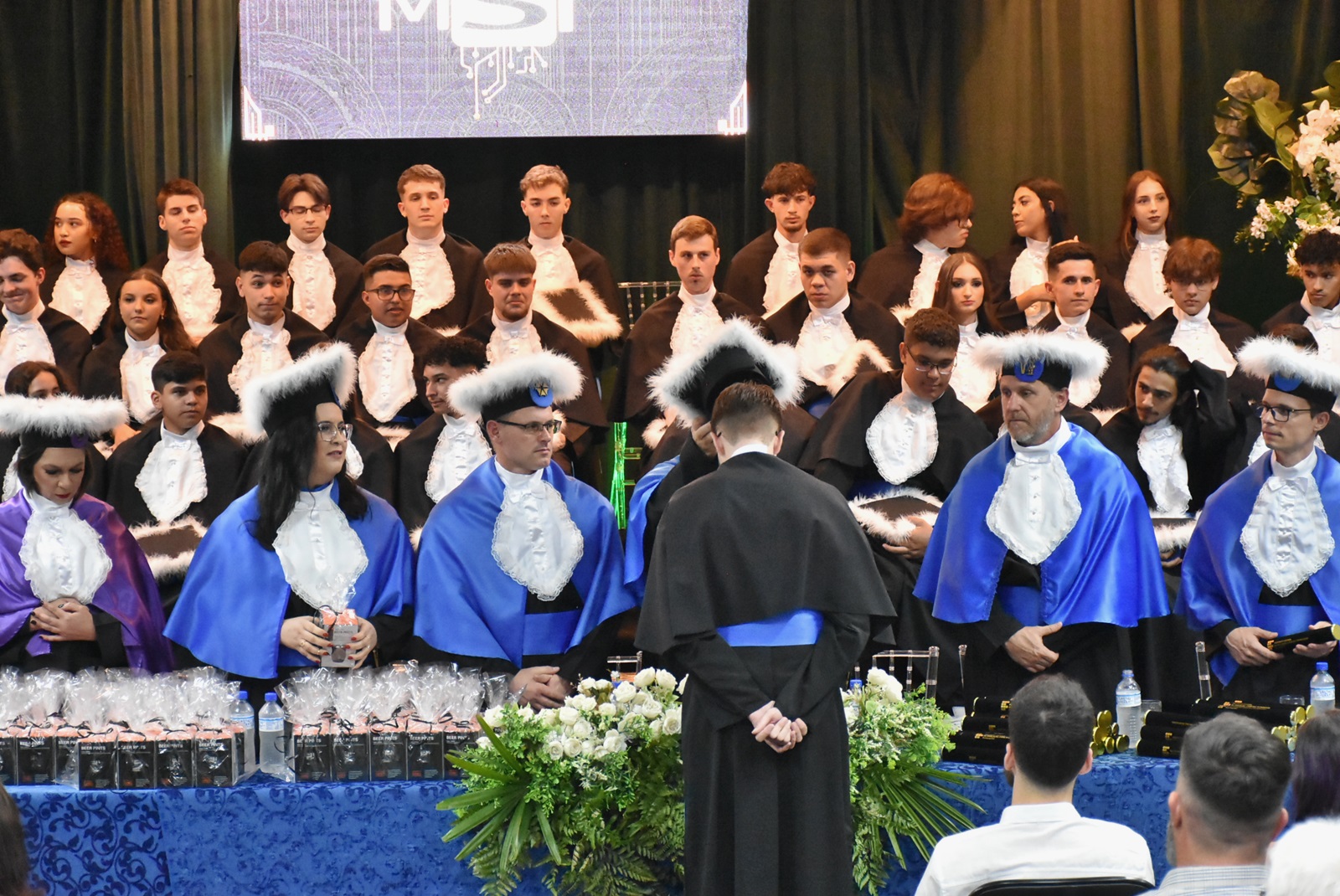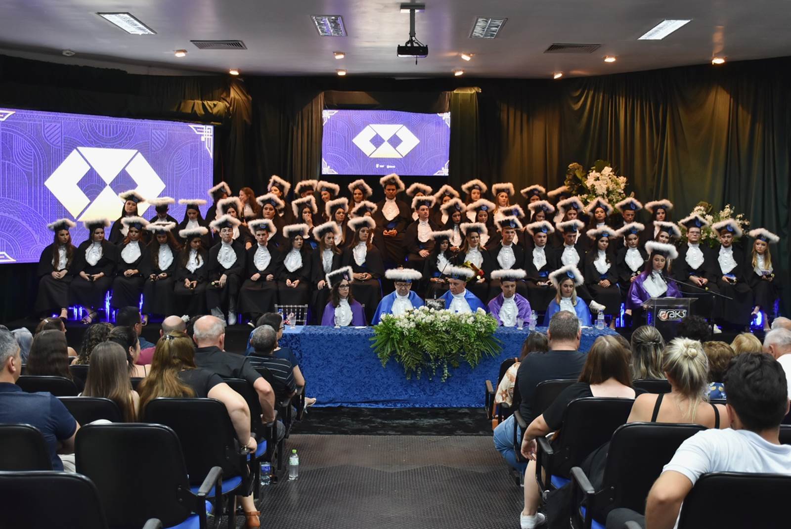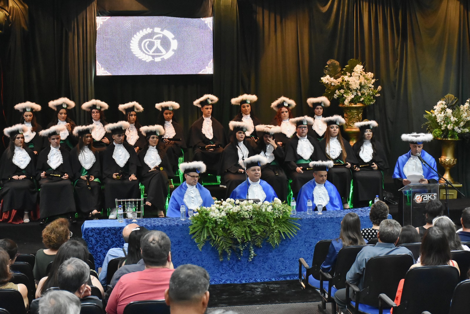 As solenidades ocorreram no Auditório Central da instituição e contaram com a participação do diretor geral, Deivid Buttinger Dutra de Oliveira; e do diretor de Ensino, João Flávio Cogo de Carvalho, na presidência das mesas; dos coordenadores de curso; professores/as homenageados/as, paraninfos/as, patronos e patronesses; além de formandos e formandas, seus amigos e familiares.
