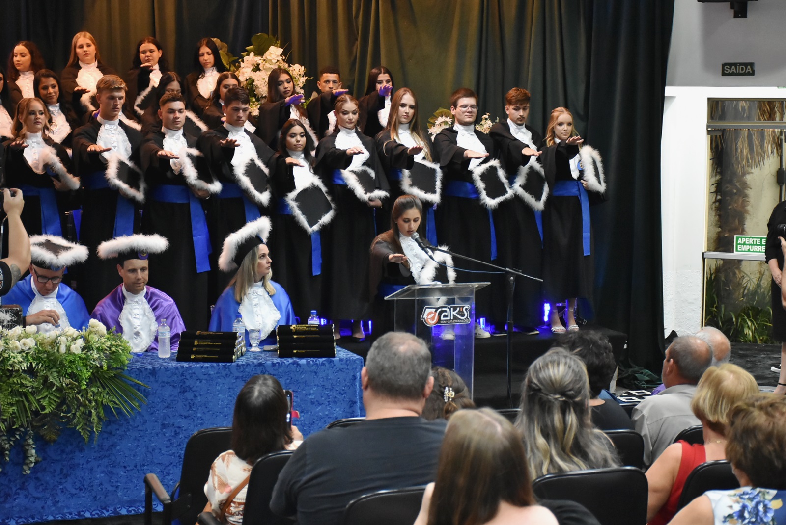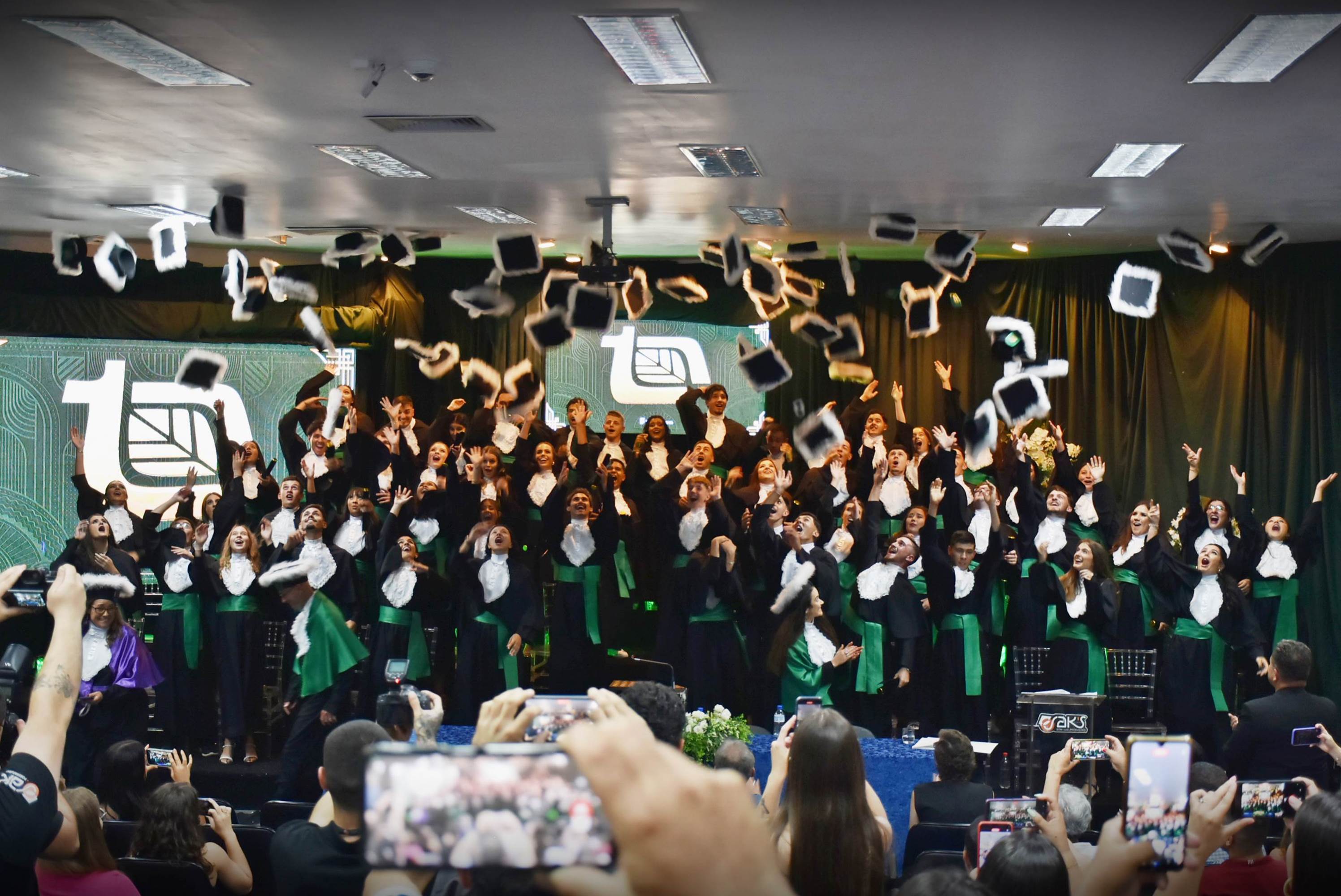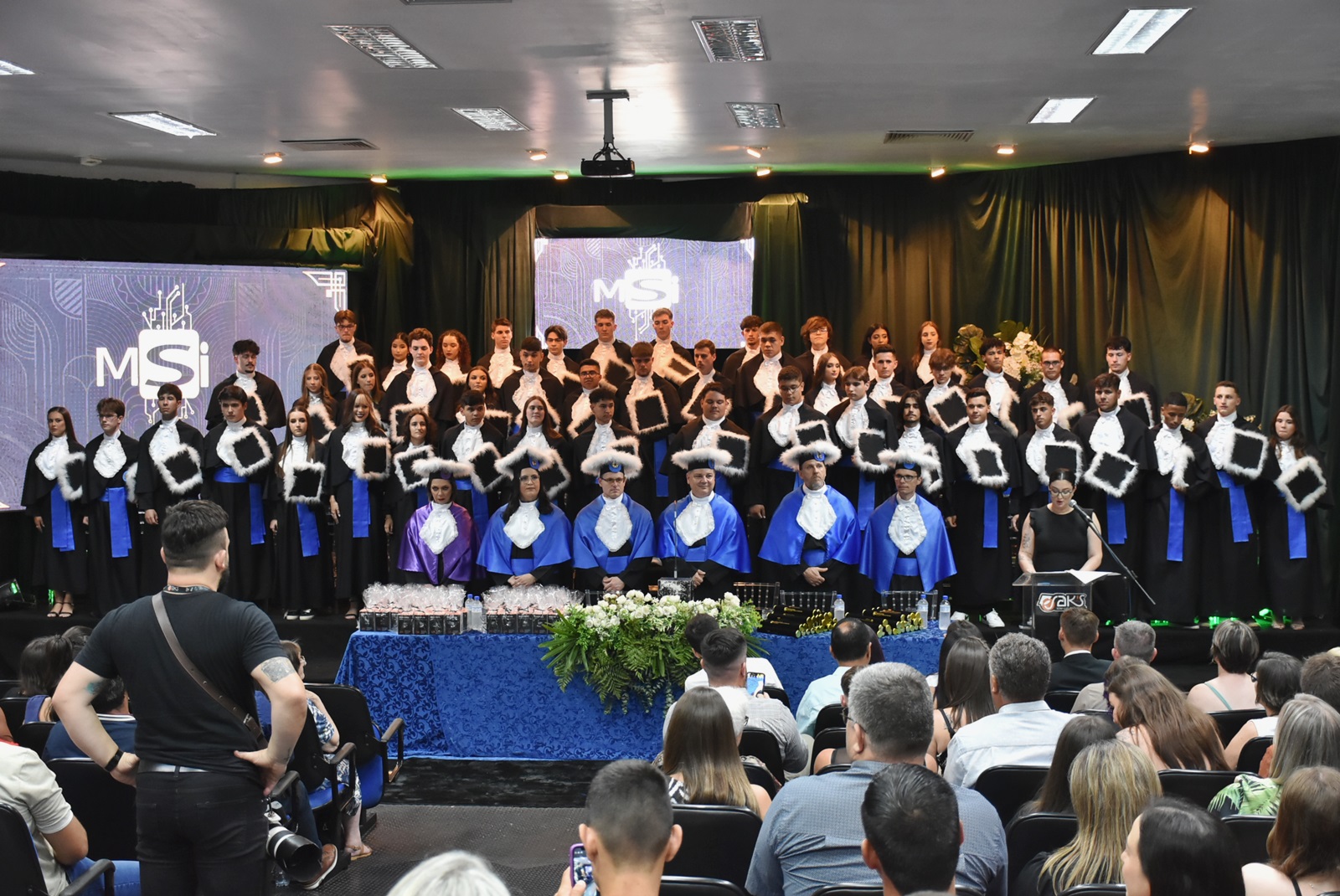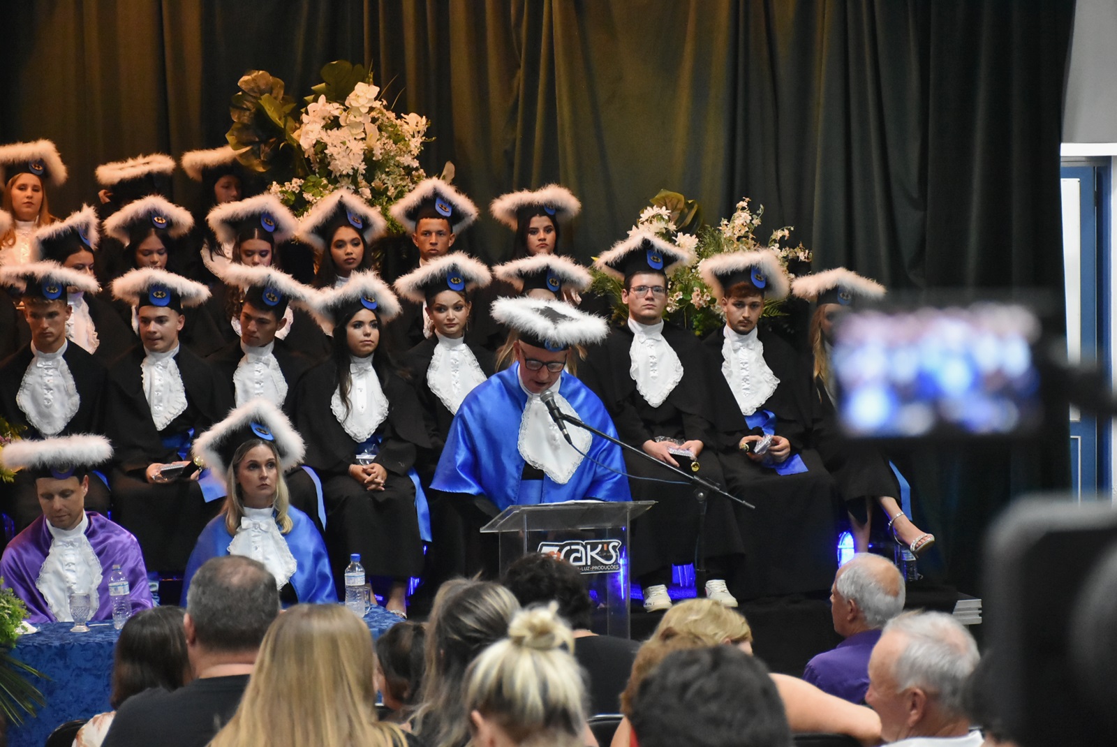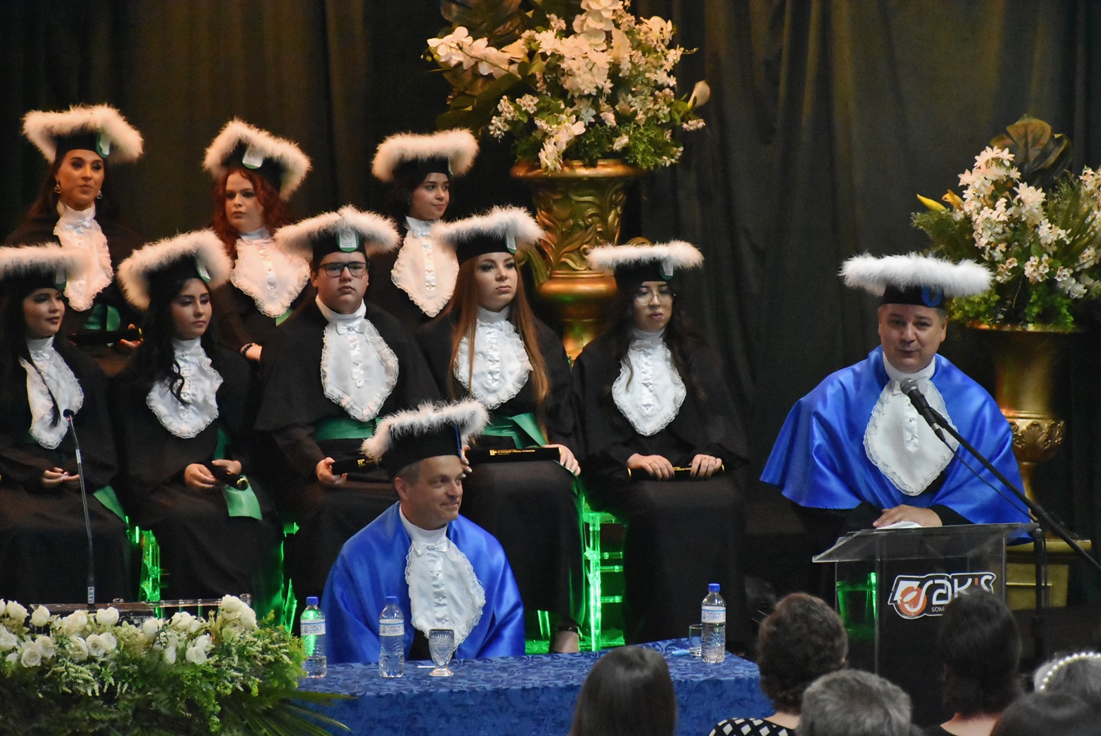 As solenidades ocorreram no Auditório Central da instituição e contaram com a participação do diretor geral, Deivid Buttinger Dutra de Oliveira; e do diretor de Ensino, João Flávio Cogo de Carvalho, na presidência das mesas; dos coordenadores de curso; professores/as homenageados/as, paraninfos/as, patronos e patronesses; além de formandos e formandas, seus amigos e familiares.