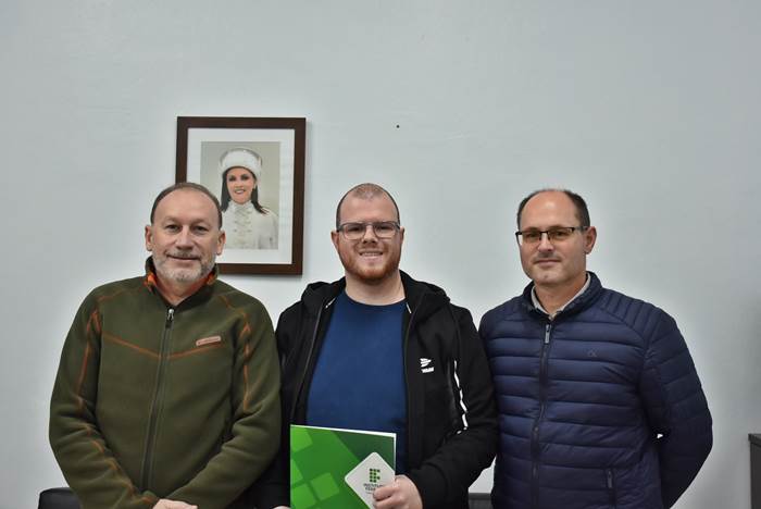 A solenidade ocorreu na sala da Direção-Geral do campus e contou com a presença do diretor-geral, Paulo Roberto Cecconi Deon; do professor Rogério Cassanta Rosado, que representou a coordenação do curso; e da servidora Silviana Delavechia Gibicoski, chefe de gabinete substituta.