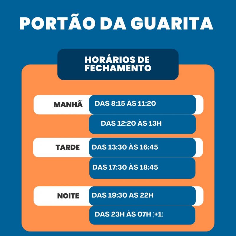 Os portões da guarita e do terminal rodoviário, que antes permaneciam majoritariamente abertos durante o horário de funcionamento da instituição, agora seguirão períodos de abertura e fechamento previamente definidos.