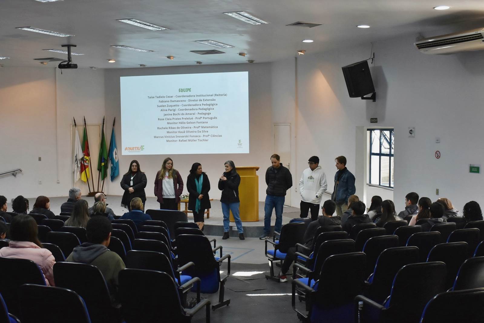 Na tarde desta quarta-feira, 25 de junho, o IFFar – Campus São Vicente do Sul realizou a aula inaugural do Programa Partiu IF, cursinho preparatório voltado a estudantes do Ensino Fundamental que desejam ingressar nos cursos técnicos integrados ao Ensino Médio dos Institutos Federais. Na ocasião, a instituição recepcionou os 38 estudantes selecionados, além dos/as professores/as e monitores/as que compõem a equipe responsável pela condução do programa.