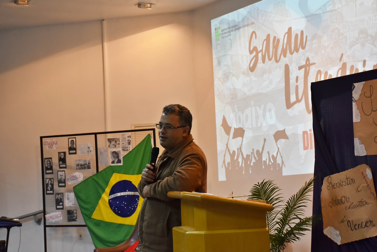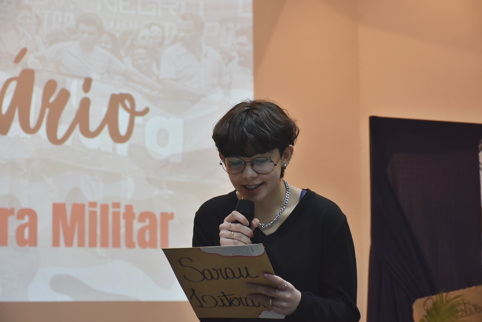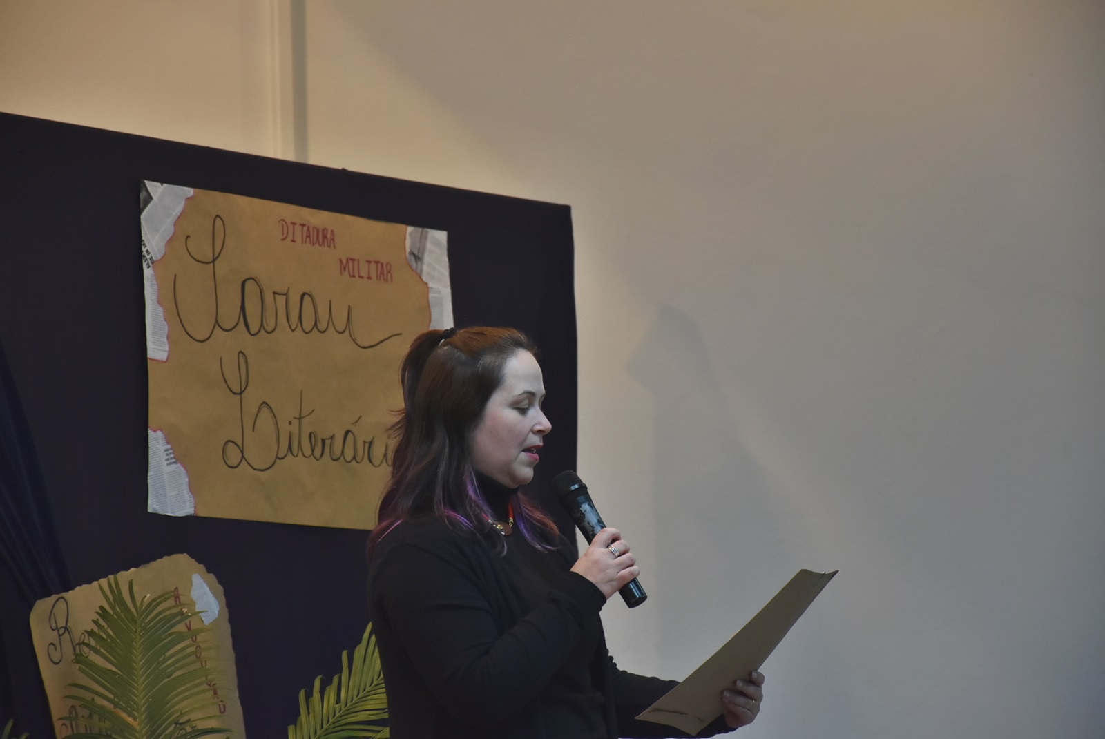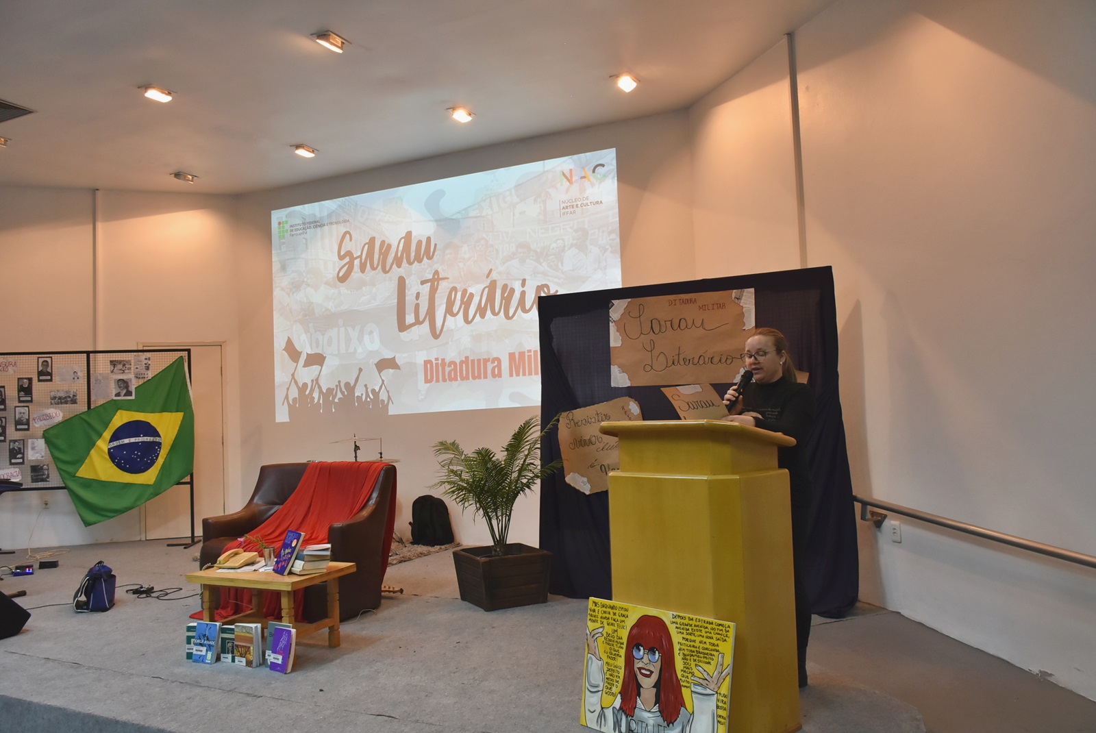 Já no dia 20 de agosto, ocorreu mais uma edição do Sarau Literário, que este ano destacou a leitura e a declamação de poemas e textos literários relacionados à Ditadura Militar. Os materiais foram trabalhados com os estudantes em parceria com o projeto de ensino “Historiando Canções”, utilizando o repositório do Memorial Poético dos Anos de Chumbo. Também houve um espaço dedicado à leitura de poesias autorais, incentivando a escrita e a expressão pessoal dos estudantes.