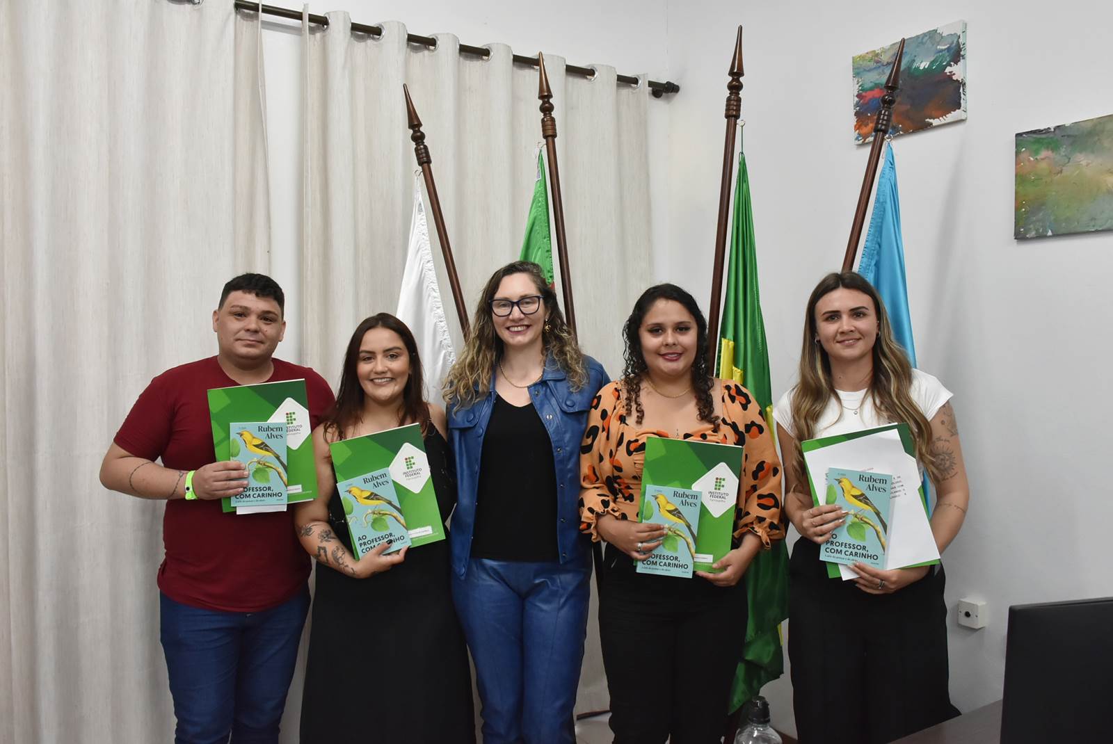 O ato solene ocorreu na sala da Direção-Geral e contou com a presença do diretor-geral do campus, professor Paulo Roberto Cecconi Deon; da coordenadora da licenciatura, profª Catiane Paniz ; e do coordenador substituto do curso de ADS, prof. Alex Marin; e da chefe de gabinete substituta, servidora Silviana Delavechia Gibicoski. Amigos e familiares dos formandos também estiveram presentes, tornando o momento ainda mais especial.