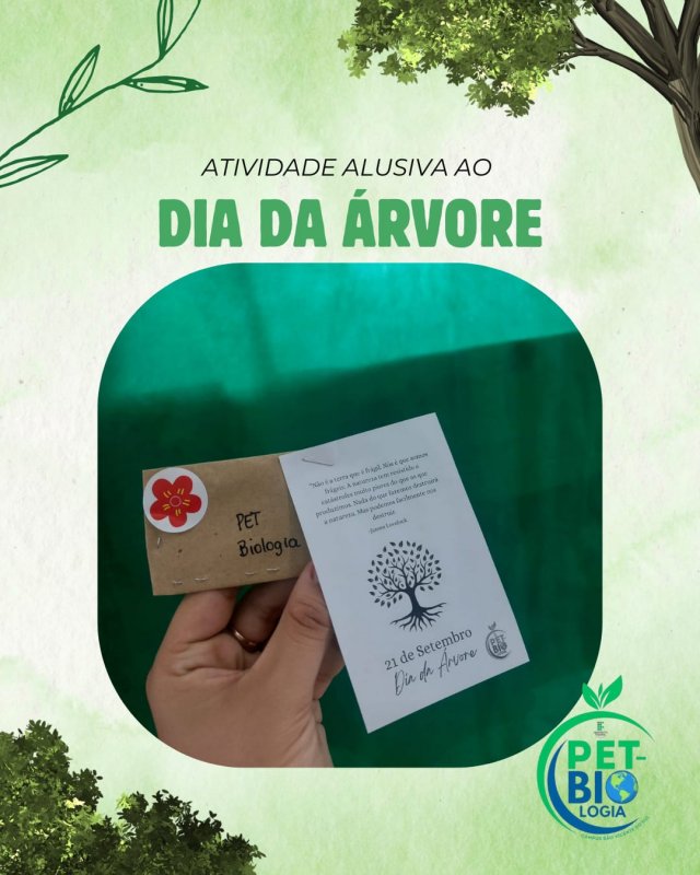 O Grupo PET-Biologia também preparou pacotinhos de sementes para distribuição à comunidade escolar. Cada conjunto continha sementes de ipê (Handroanthus sp.), jacarandá-mimoso (Jacaranda mimosifolia) e flamboyant (Delonix regia).