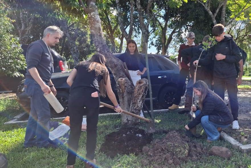 Em alusão ao Dia Mundial da Árvore, celebrado em 21 de setembro, o Instituto Federal Farroupilha – Campus São Vicente do Sul realizou, na tarde de segunda-feira (22), uma ação de conscientização ambiental com o plantio de mudas de ipê.