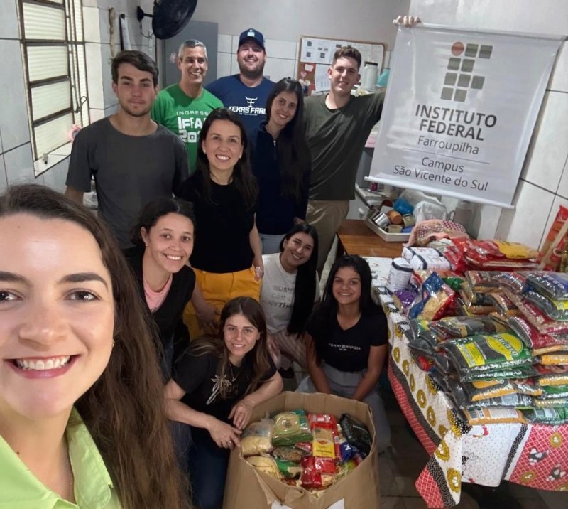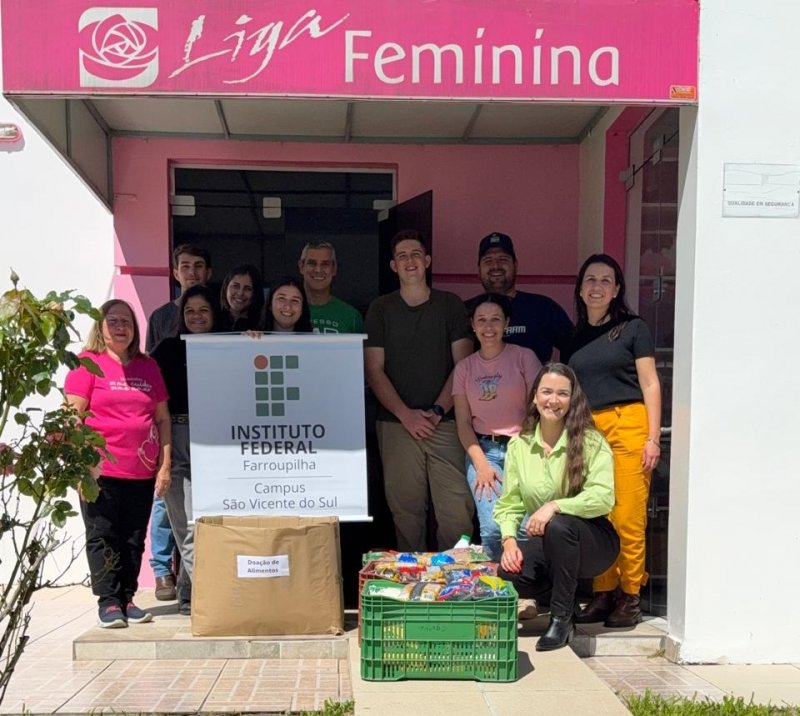 A 3ª edição do Ciclo de Palestras em Pecuária de Corte contou com a arrecadação de alimentos não perecíveis no ingresso do evento. O material arrecadado foi entregue por servidores e estudantes ao asilo municipal e à Liga de Combate ao Câncer de São Vicente do Sul, fortalecendo o vínculo da instituição com a comunidade e contribuindo para apoiar iniciativas locais de assistência social e saúde.