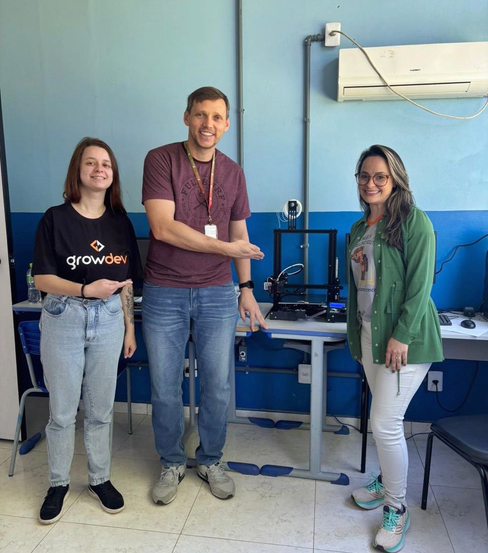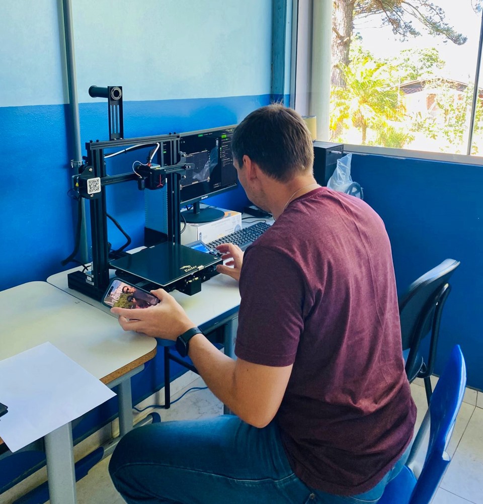 A estudante Carolina, que atua como bolsista no LabMaker, conta que a montagem do equipamento serviu, neste primeiro momento, como uma capacitação introdutória para a equipe da escola. Segundo ela, o processo foi uma oportunidade prática de aprendizado: “Passamos para a galera algumas noções básicas de como utilizar, modelar, fatiar e imprimir. Foi um contato fundamental para que eles pudessem dar os primeiros passos”.