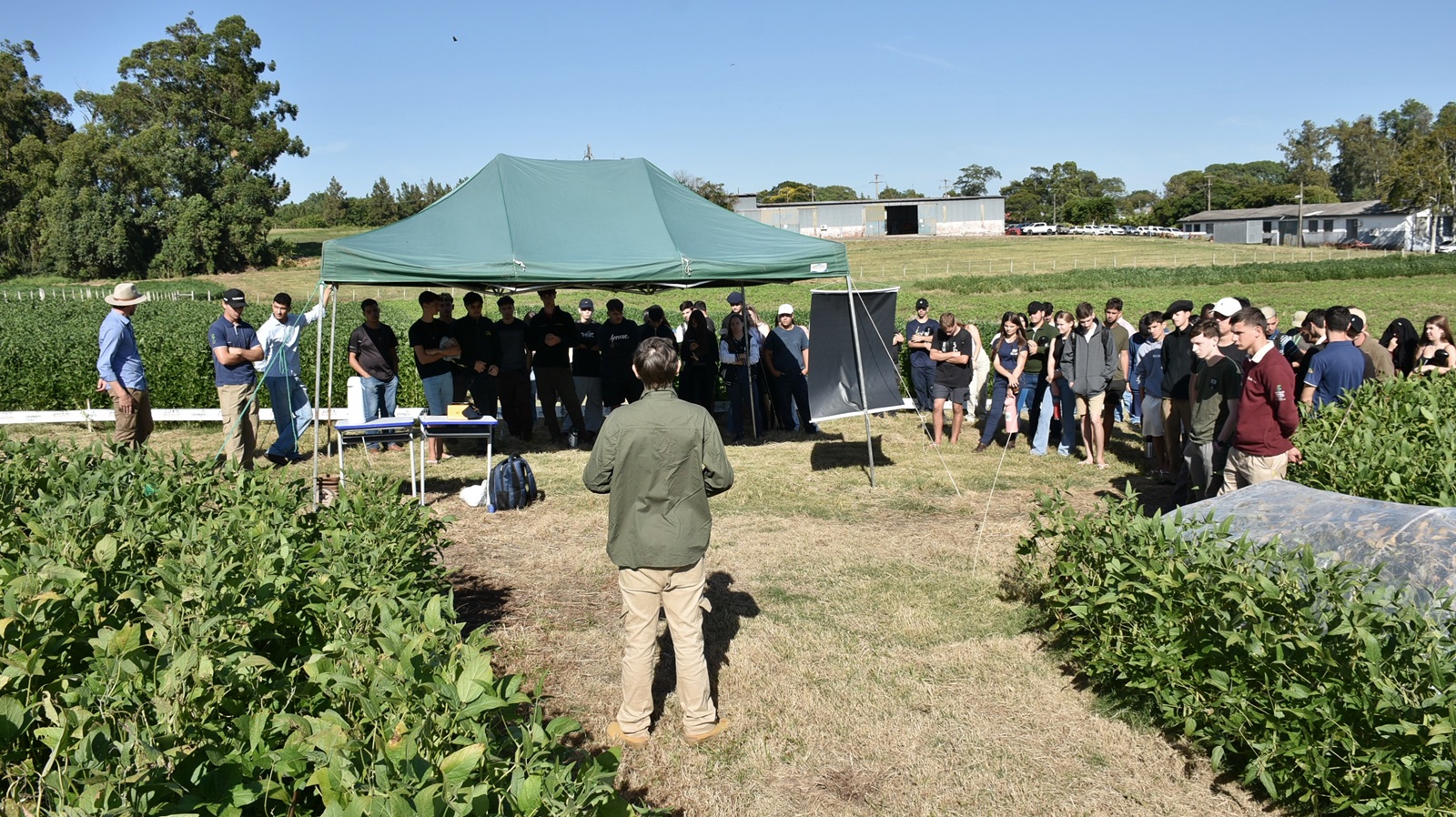 O Instituto Federal Farroupilha – Campus São Vicente do Sul realizou na última sexta-feira, 27 de fevereiro, o Dia de Campo de Culturas Anuais de Verão, evento voltado a difusão de tecnologias e o debate técnico sobre o sistema de produção de soja no contexto local. Promovido pelo Grupo de Pesquisas Agrícolas (GPA), a atividade reuniu em torno de 180 participantes, entre estudantes, docentes, profissionais da área e produtores rurais.