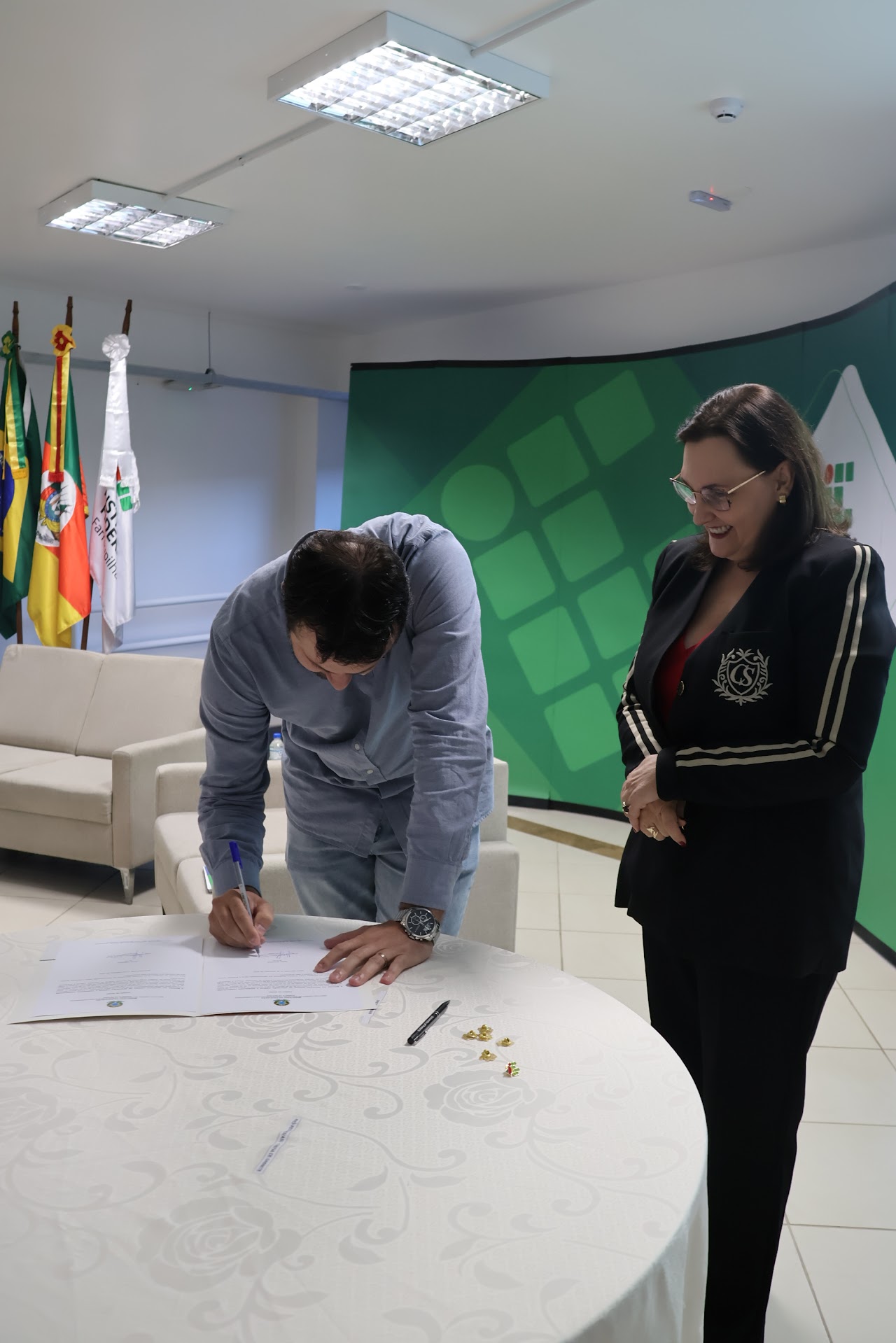 Na última quinta-feira, 11 de setembro, o Instituto Federal Farroupilha (IFFar) deu início ao Módulo II do Seminário de Formação de Gestores, realizado na Reitoria, em Santa Maria. A programação foi marcada pela posse dos novos diretores-gerais (Gestão 2025 - 2028) dos campi da Instituição. No Campus Uruguaiana, assumiu a Direção-Geral o professor Jhonathan Alberto dos Santos Silveira, que estará à frente da gestão acompanhado de sua equipe diretiva: Louise Pinho – Diretora de Ensino, Pesquisa e Extensão; Diely Valim – Diretora Substituta de Ensino, Pesquisa e Extensão; Maurício Sanchotene – Coordenador de Administração, Planejamento e Desenvolvimento Institucional; Pablo Viegas – Diretor-Geral Substituto. O Seminário de Formação de Gestores, composto por IV módulos, tem como propósito qualificar a atuação das equipes diretivas do IFFar, contribuindo para o fortalecimento da gestão institucional e para a melhoria contínua do atendimento à comunidade acadêmica e dos processos administrativos nos campi.