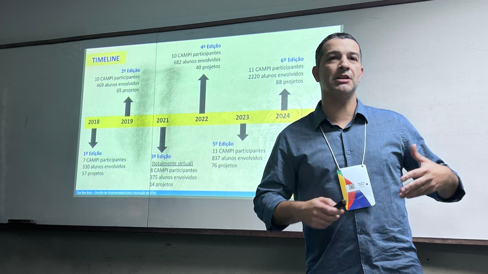 Entre os destaques da instituição, o professor Anderson Monteiro, coordenador de Inovação Tecnológica, apresentou o projeto "Bye Bye Boss – Desafio de Empreendedorismo e Inovação", que obteve a segunda melhor classificação nacional entre os cinco projetos selecionados entre aqueles que estimulam a cultura empreendedora e inovação junto aos estudantes da Rede Federal. “Pudemos divulgar o Bye Bye Boss junto à Rede Federal e fortalecer a ideia de que projetos com metodologias escaláveis e adaptáveis, como o nosso, têm potencial de inspirar outras instituições. A troca de experiências foi rica e nos permitirá aperfeiçoar ainda mais o desafio, reafirmando a importância da colaboração entre os IFs para transformar ideias em soluções reais”, destaca Monteiro.