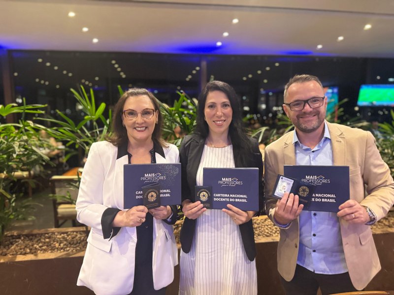 A reitora do IFFar, professora Nídia Heringer, e os pró-reitores de Desenvolvimento Institucional, Carlos Lehn, e de Ensino, Patrícia Donicht, receberam do Ministério da Educação (MEC) a Carteira Nacional Docente do Brasil (CNDB). A cerimônia ocorreu nesta quinta-feira (18), em Brasília, com a participação do ministro da Educação Camilo Santana.